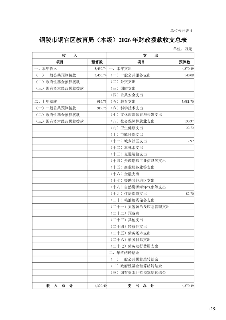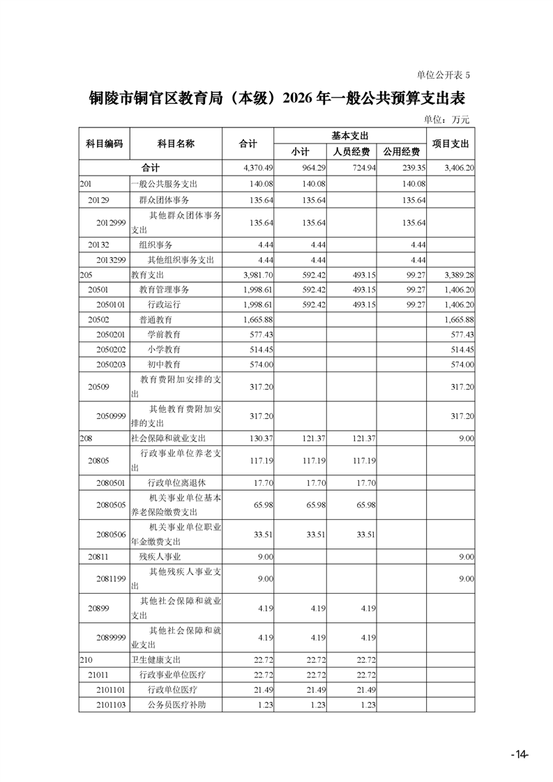 铜陵市铜官区教育局(本级)2026年度预算信息公开-铜官区人民政府