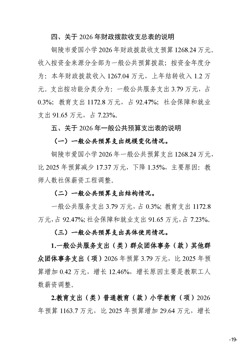 铜陵市爱国小学2026年度预算信息公开-铜官区人民政府