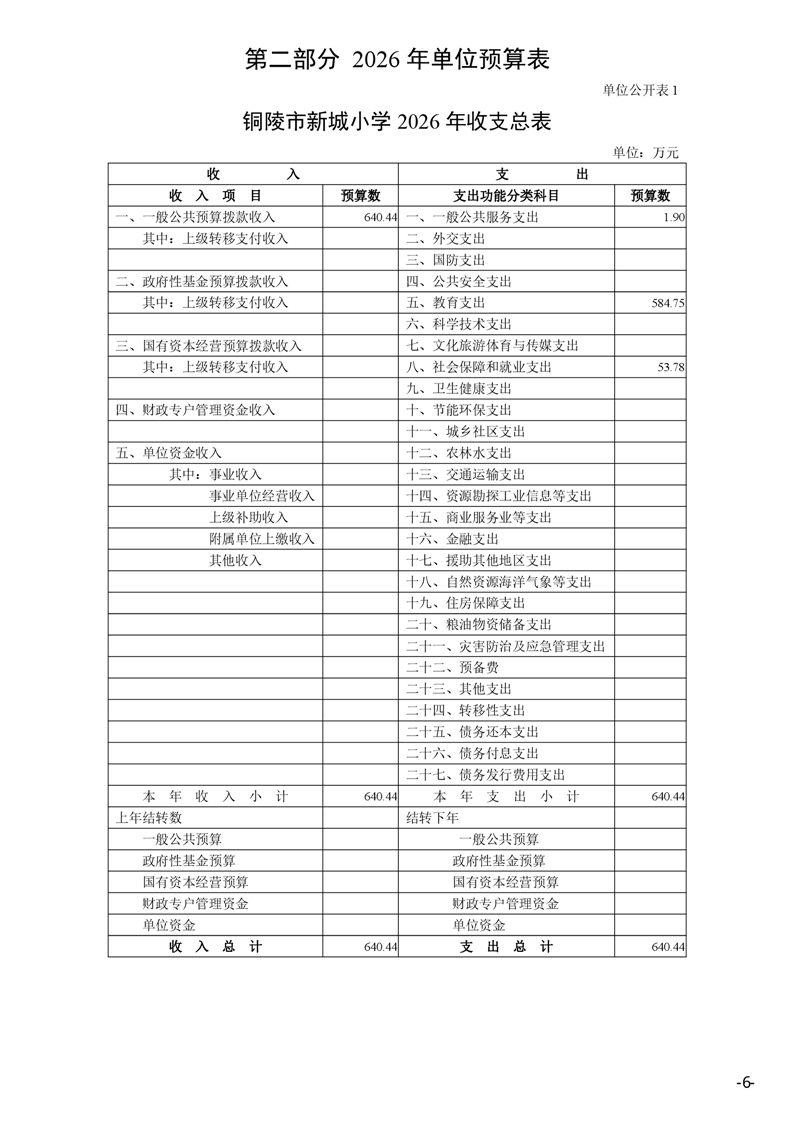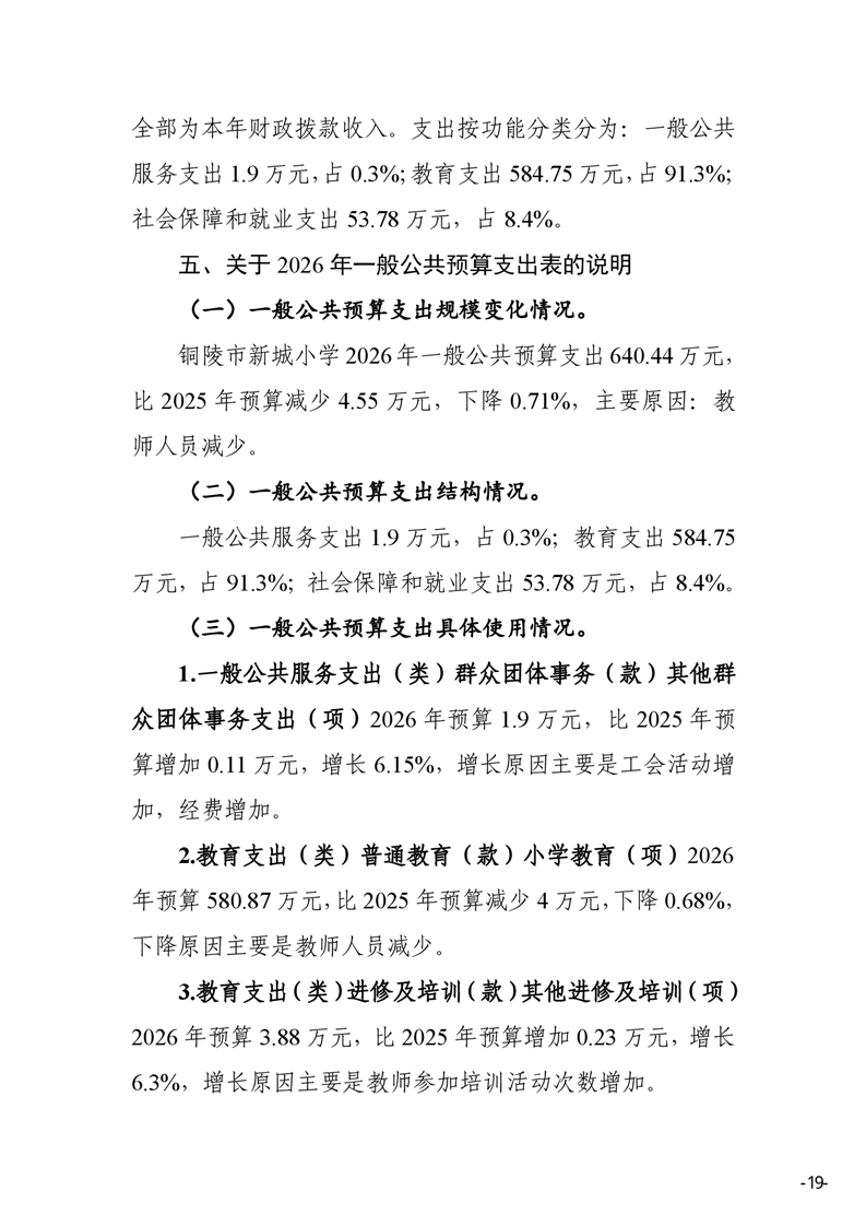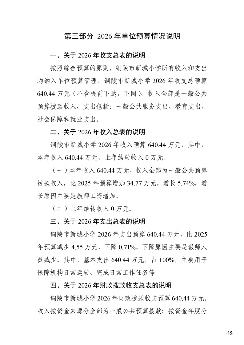 铜陵市新城小学2026年单位预算公开-铜官区人民政府