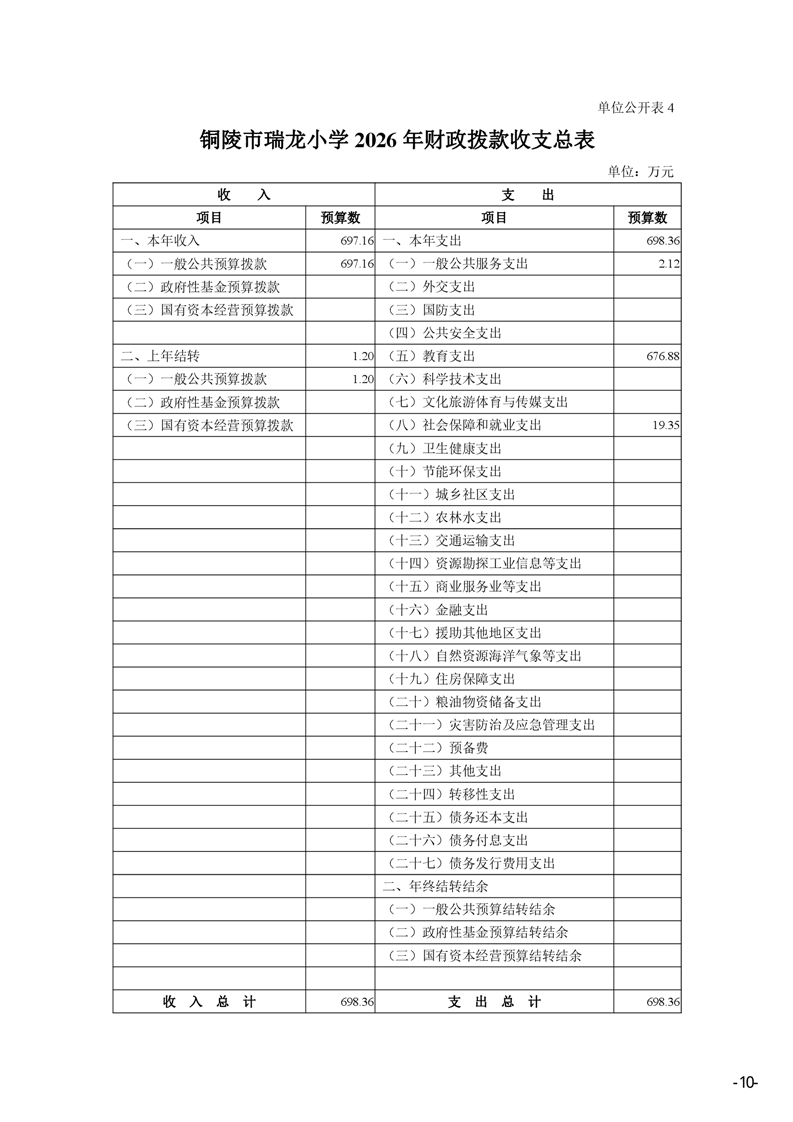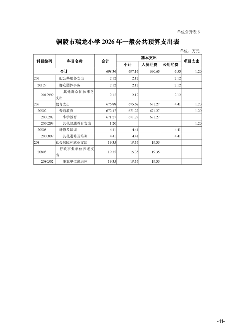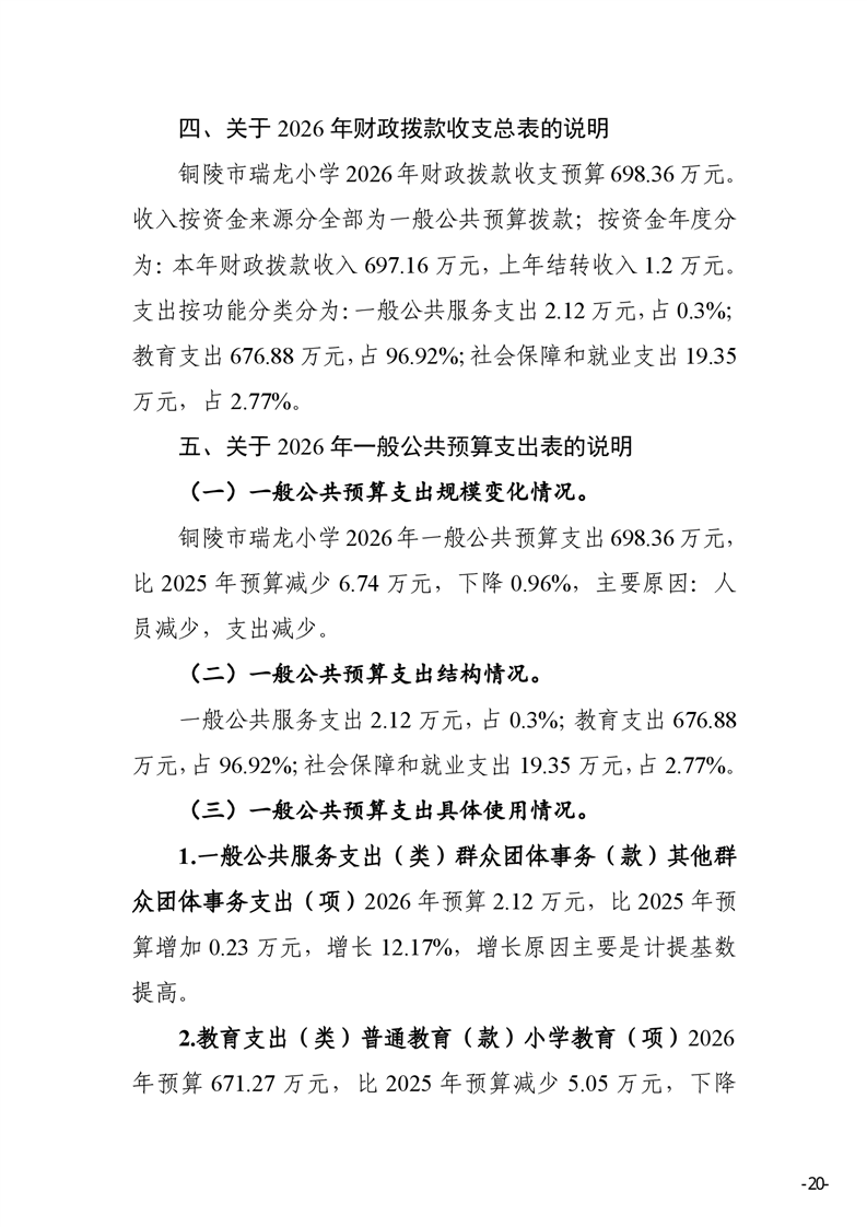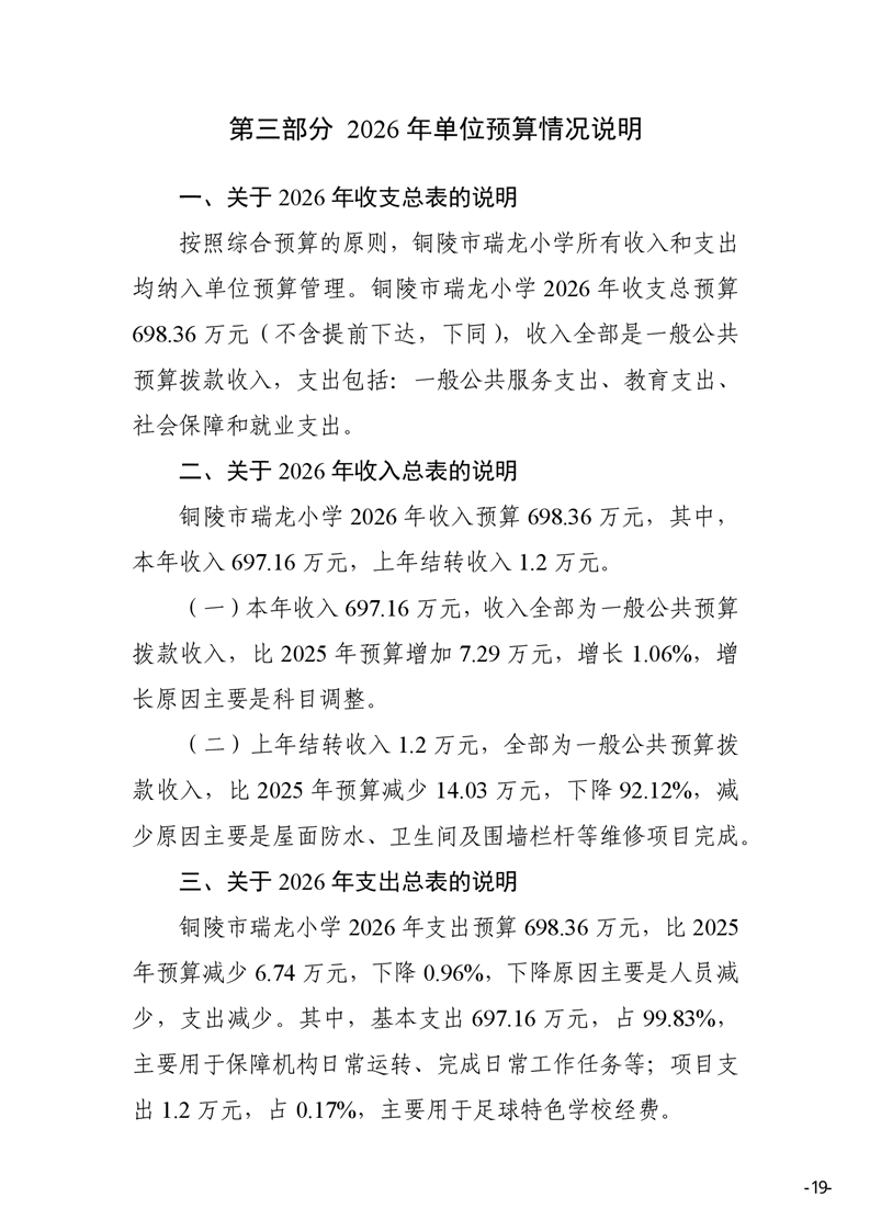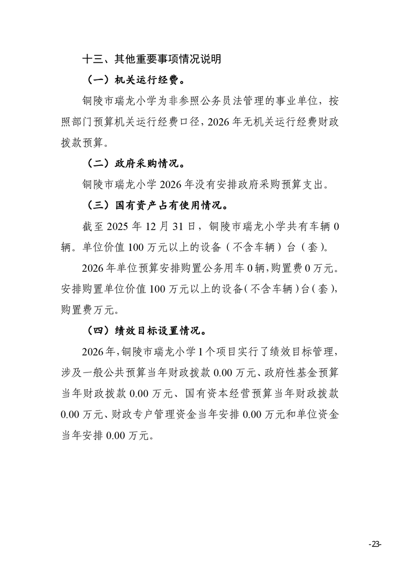 铜陵市瑞龙小学2026年度预算信息公开-铜官区人民政府