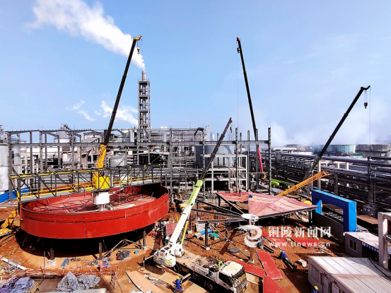 日前,位于横港化工园的六国化工150万吨/年磷肥生产线预处理装置工艺绿色升级改造项目现场建设正酣,进入核心设备安装与主体结构攻坚阶段。