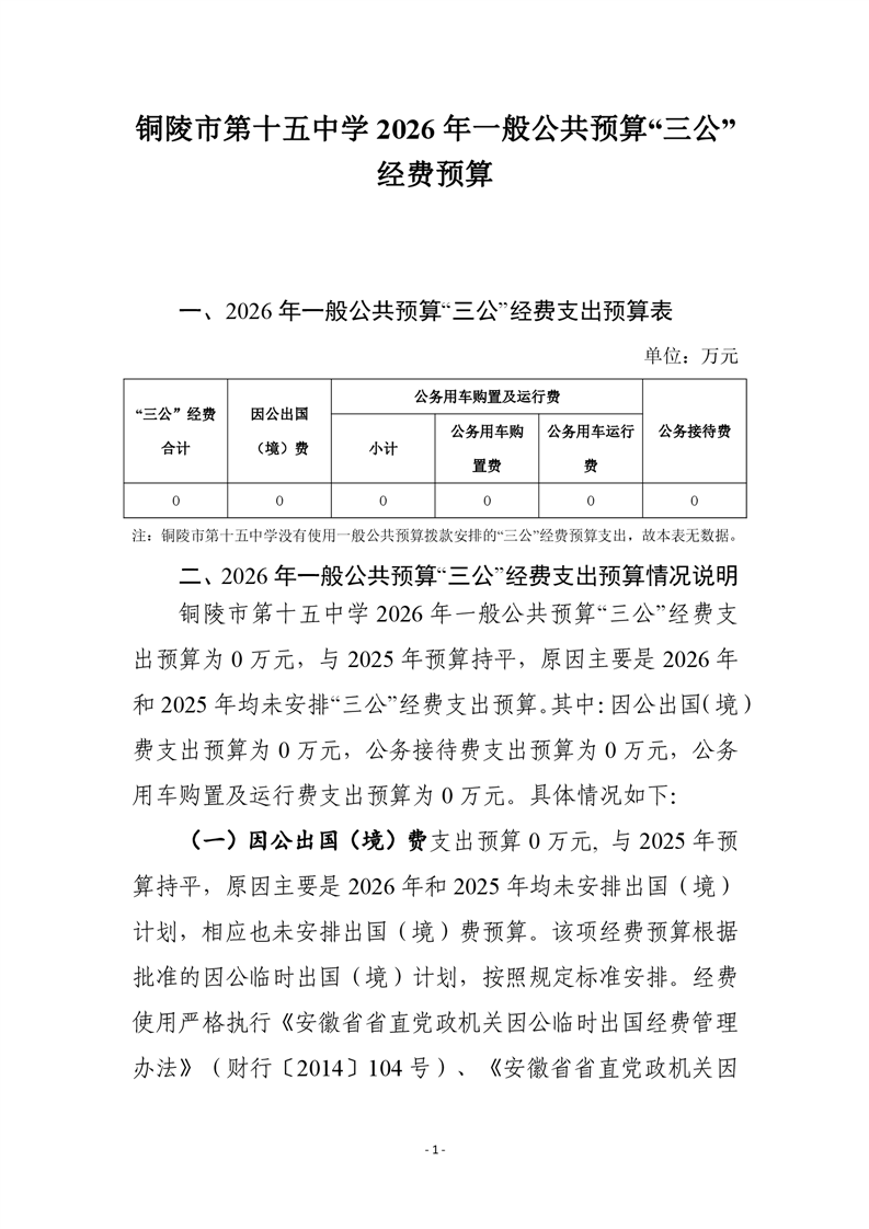 铜陵市第十五中学2026年度“三公”经费预算信息公开-铜官区人民政府