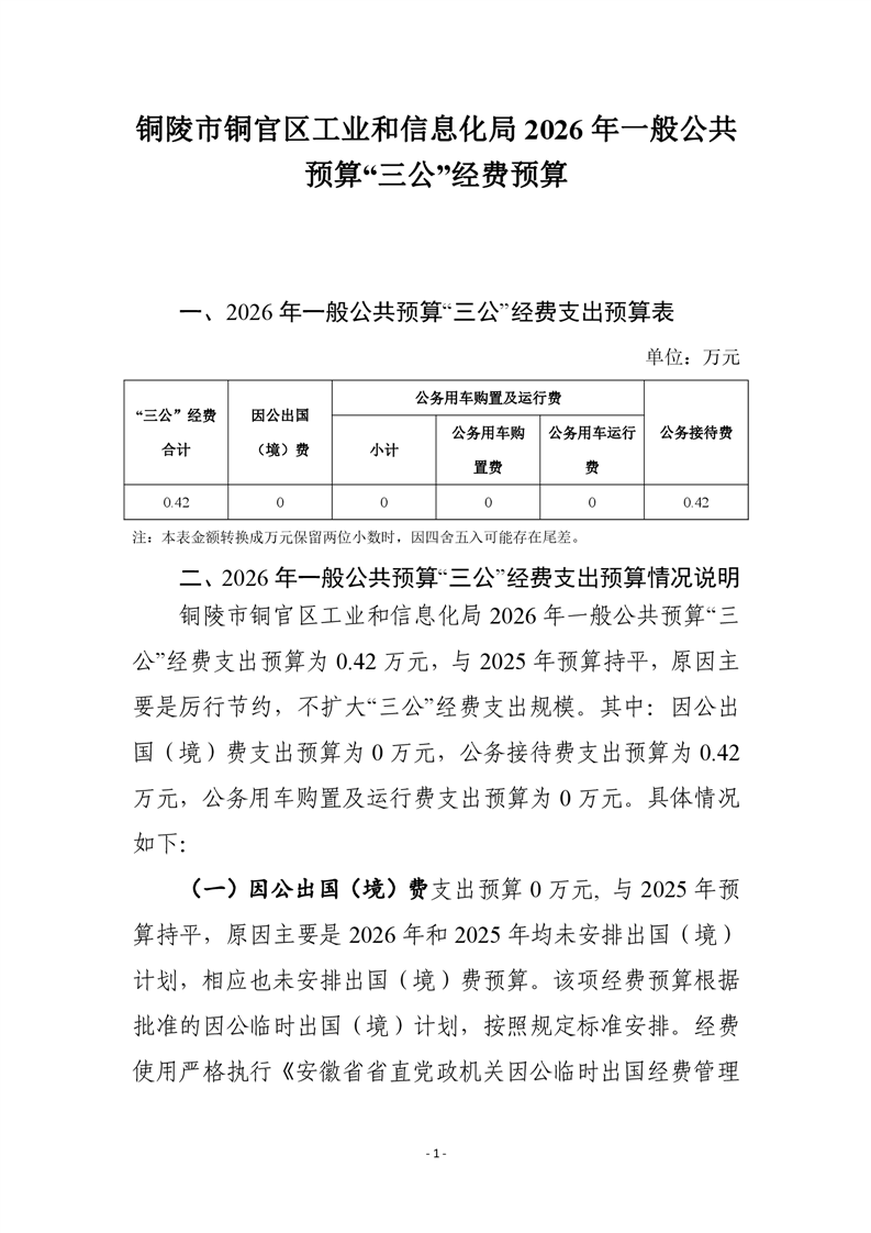 铜陵市铜官区工业和信息化局2026年度三公经费预算信息-铜官区人民政府