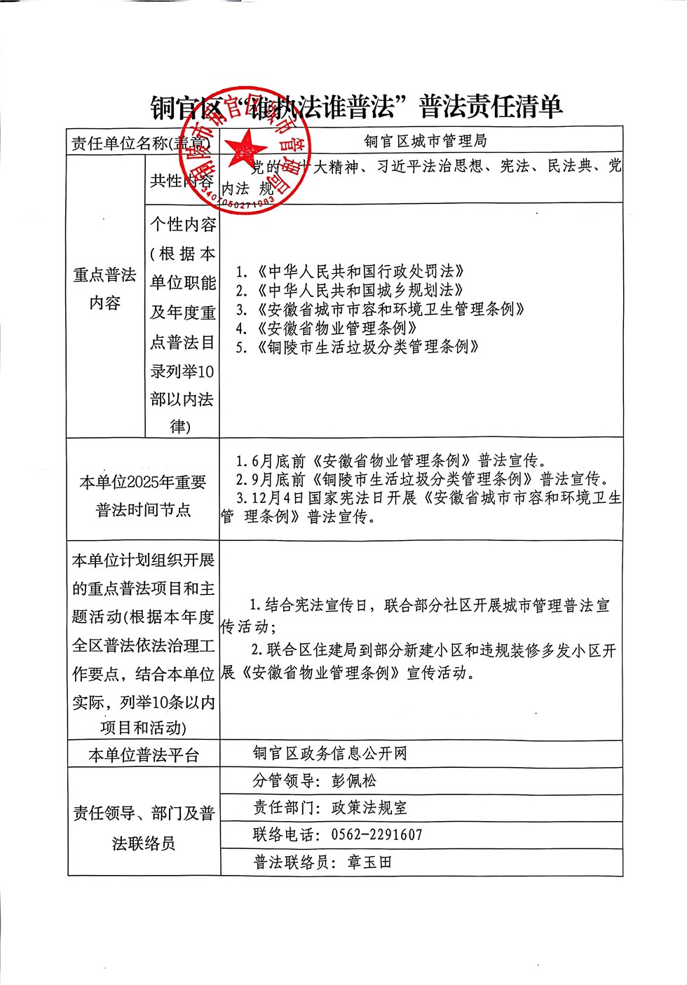 2026年铜官区城市管理局“谁执法谁普法”普法责任清单-铜官区人民政府