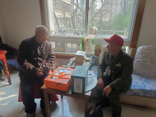 为扎实做好退役军人关爱服务工作,近日,铜官山社区退役军人服务站工作人员与“兵为兵”优抚协理员汪荣振同志一同携带水果等慰问品,走访慰问辖区退役老兵许天台,为老人送去诚挚的问候。