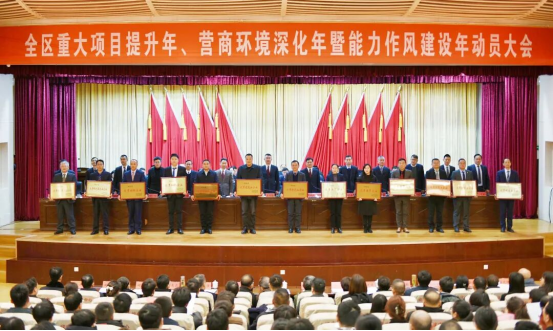 全区重大项目提升年、营商环境深化年暨能力作风建设年动员大会召开政企同心开新局 拼战铜官再冲锋奋力为铜陵发展担纲承梁 2月7日上午,全区重大项目提升年、营商环境深化年暨能力作风建设年动员大会在区行政会议中心二楼礼堂召开。区委书记王书春出席会议并讲话,号召广大企业家聚焦主业、做强实业,当好产业发展的“主力军”、招商引资的“搭桥者”、推介家乡的“代言人”,更多的心系铜官、关注铜官、推介铜官、建设铜官。区委副书记、区长陈洁主持会议。区领导巫永生、汪世应、叶叶、李梅生、石之甫、杨治、汪志祥、刘文俊、朱军等出席会议。安徽小菜园餐饮控股有限公司董事长汪书高,铜陵有色金属集团铜冠矿山建设股份有限公司党委副书记、副总经理姚俊杰等企业家代表应邀在主席台就座。