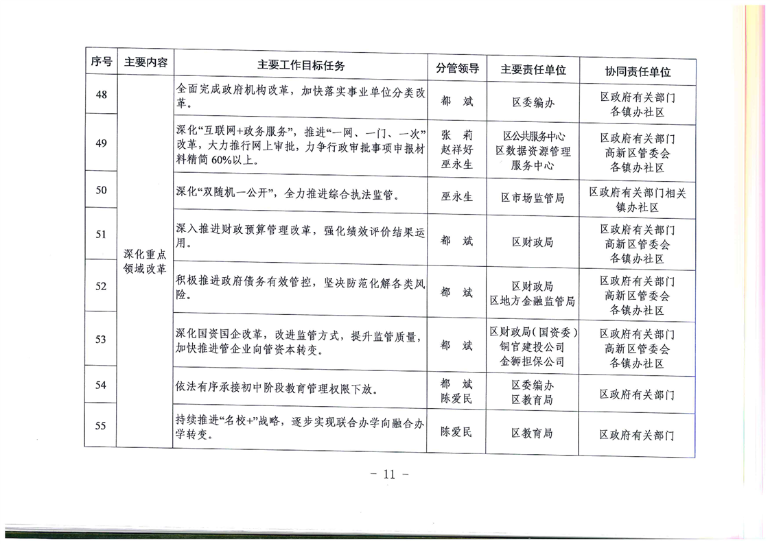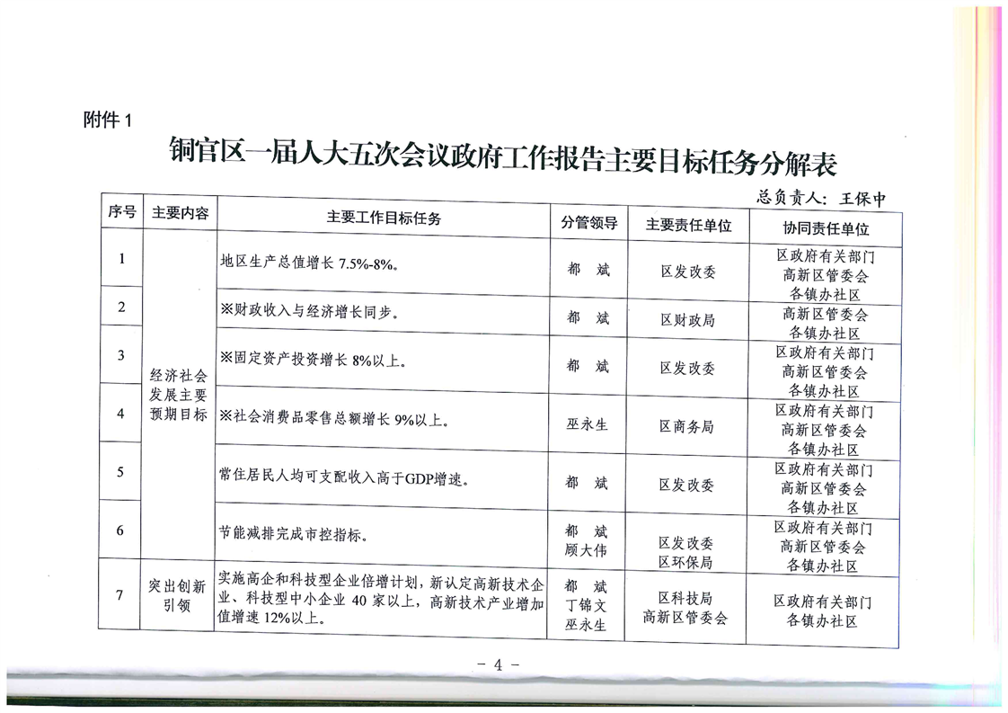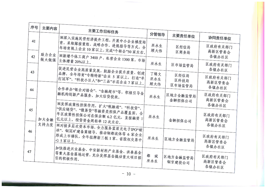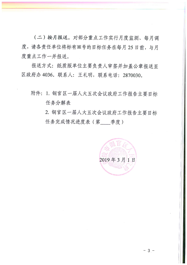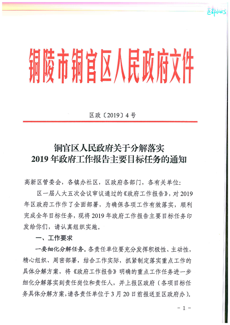 铜官区人民政府关于分解落实2019年政府工作报告主要目标任务的通知