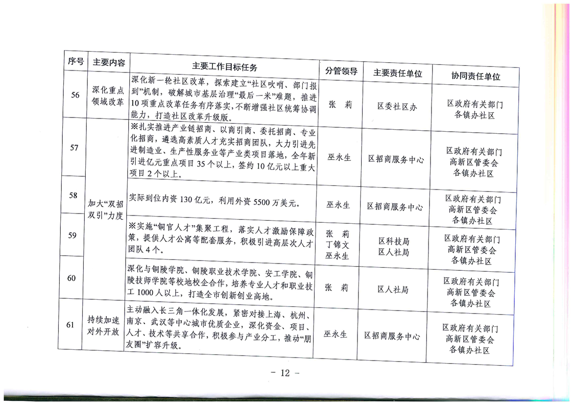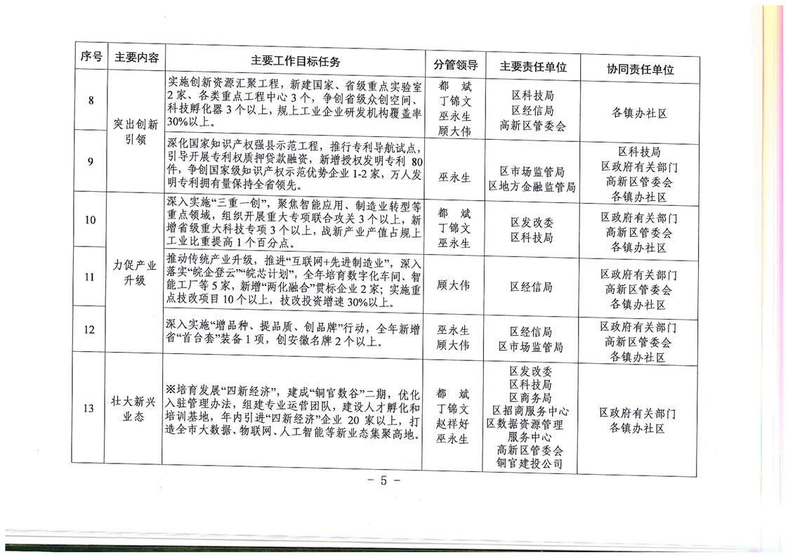 铜官区人民政府关于分解落实2019年政府工作报告主要目标任务的通知-铜官区人民政府