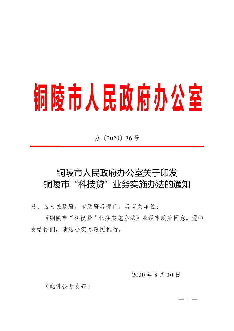 铜陵市人民政府办公室关于印发铜陵市“科技贷”业务实施办法的通知-铜官区人民政府