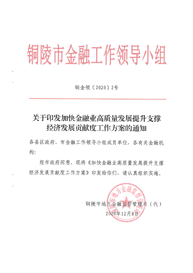 【转载】关于印发加快金融业高质量发展提升支撑经济发展贡献度工作方案的通知-铜官区人民政府