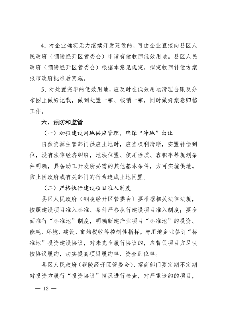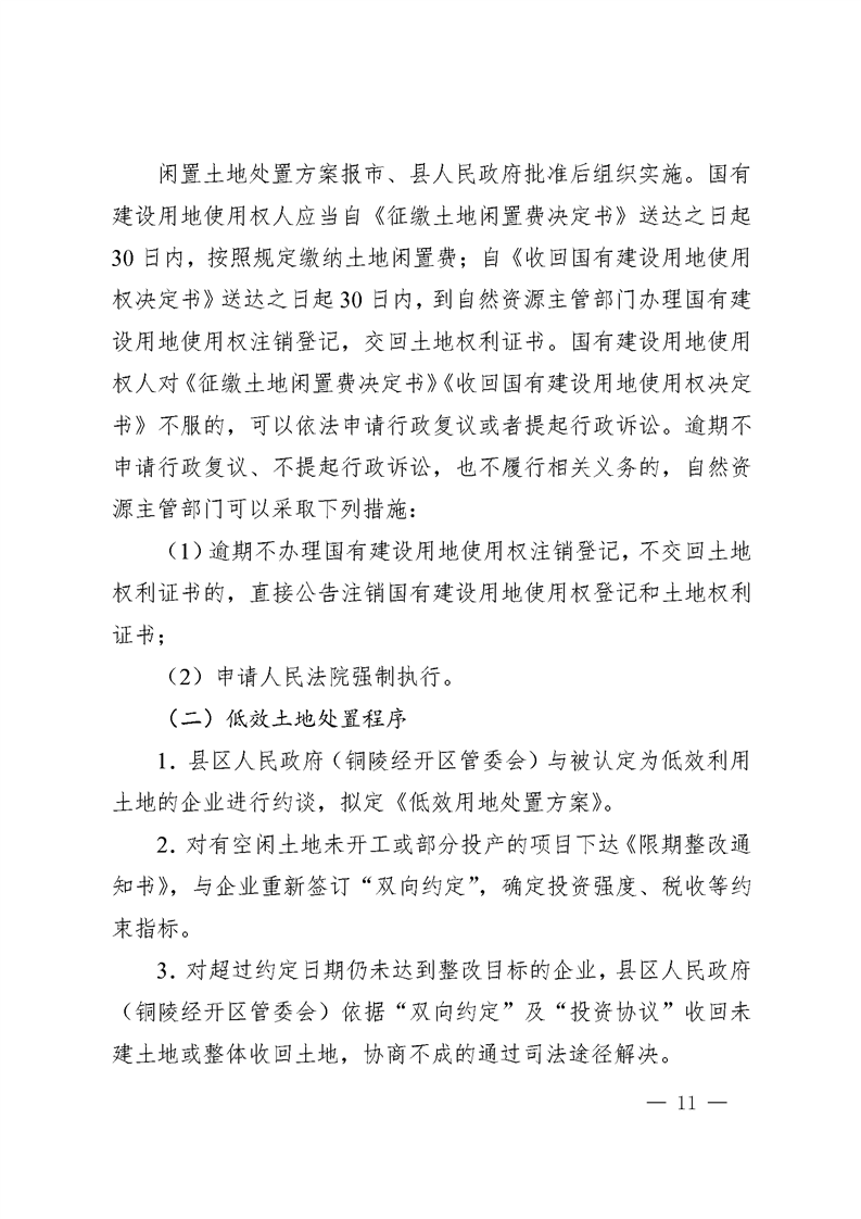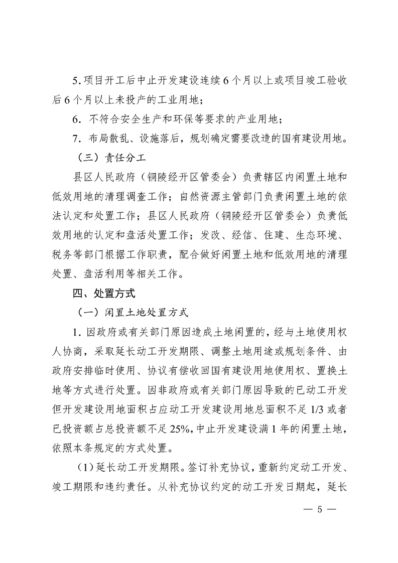铜陵市人民政府办公室关于闲置和低效用地清理处置工作的实施意见-铜官区人民政府