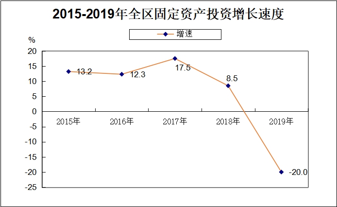 2019年,全区固定资产投资额累计完成1213439万元,同比下降20.0 %。其中工业投资完成307398万元,同比下降44.8 %;工业技改投资完成214318万元,同比下降56.1 %;房地产开发投资完成592315万元,同比增长28.8 %。