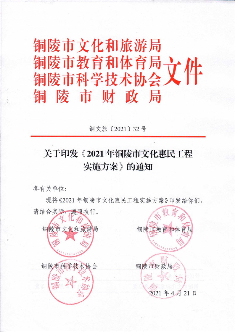 3、《2021年铜陵市文化惠民工程实施方案》