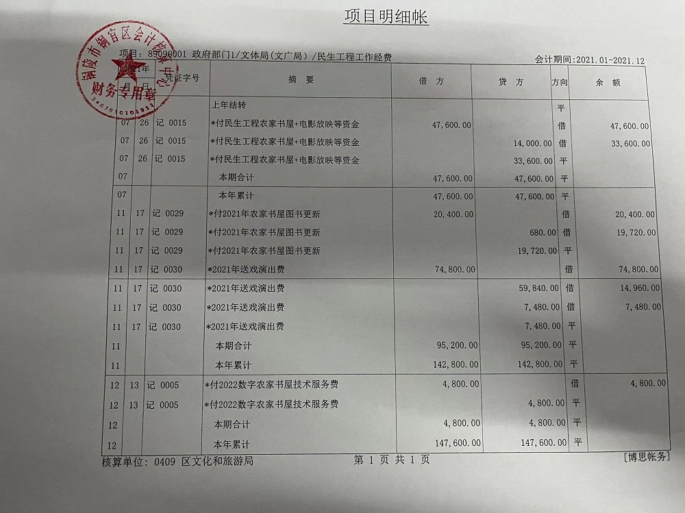 民生工程资金拨付(电影放映、农家书屋、送戏进万村)