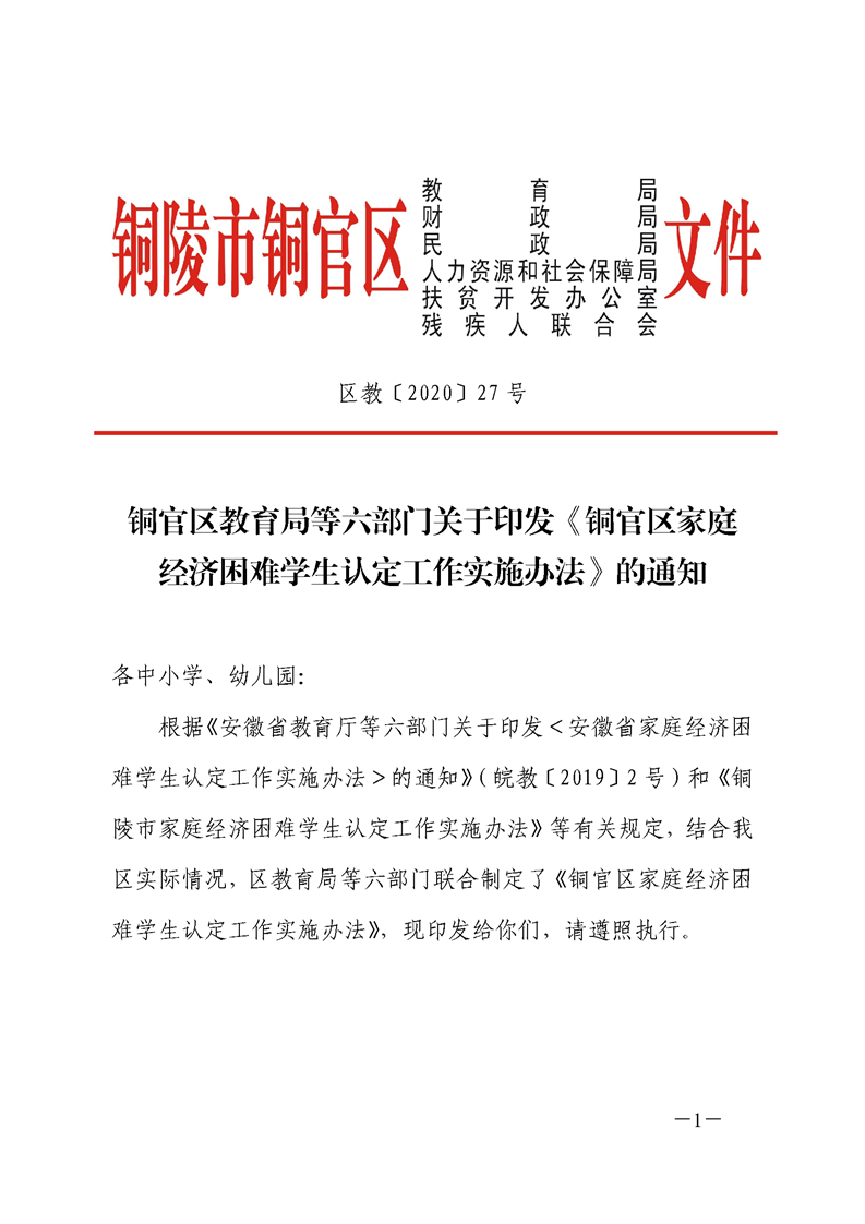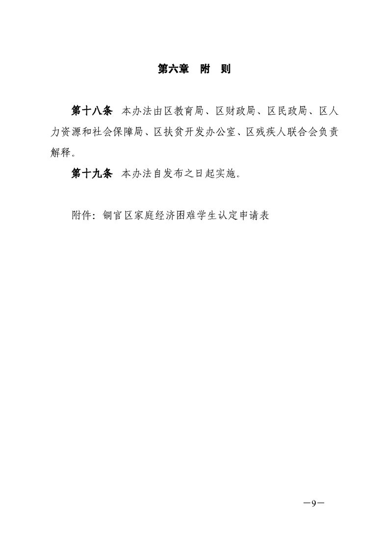 铜官区教育局等六部门关于印发《铜官区家庭经济困难学生认定工作实施办法》的通知-铜官区人民政府