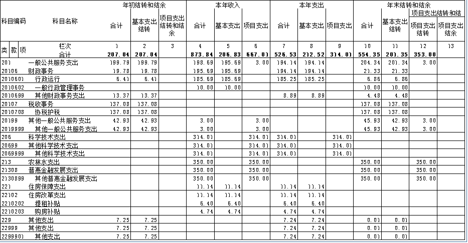 收入支出决算总表