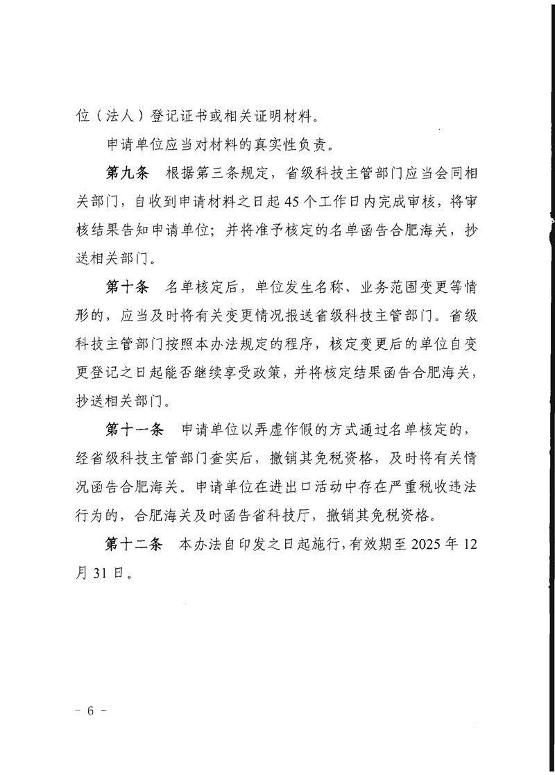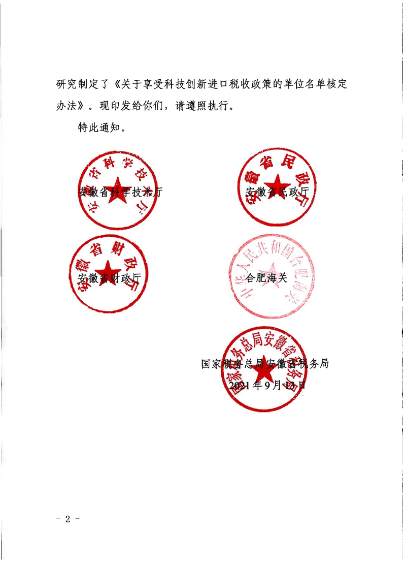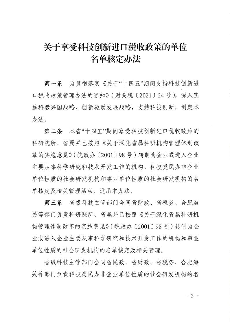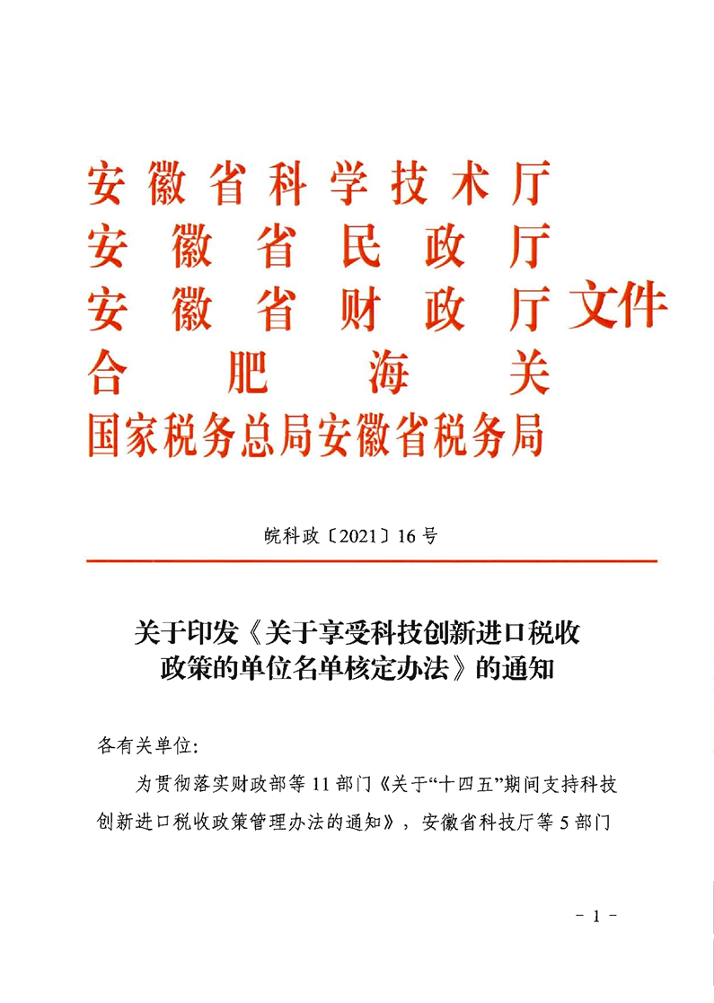 关于享受科技创新进口税收政策的单位名单核定办法(皖科政2021-16号)-铜官区人民政府