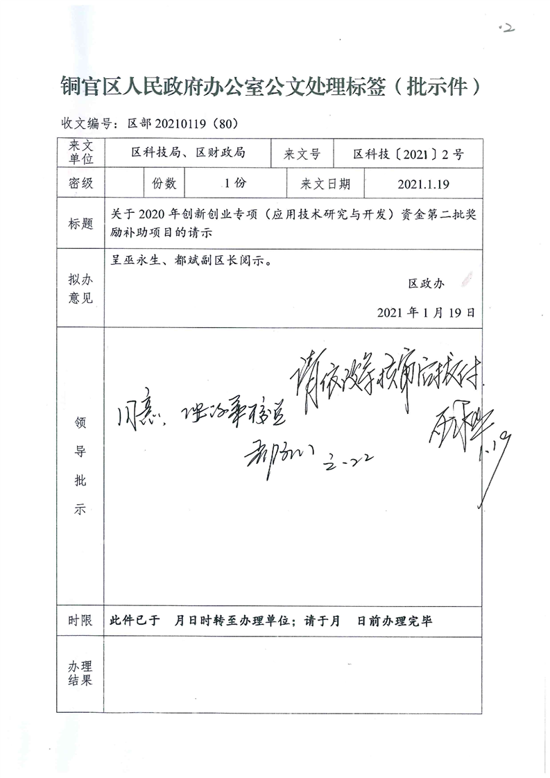 附件:区部20210119(80)关于2020年创新创业专项(应用技术研究与开发)资金第二批奖励补助项目的请示.pdf【2 B】