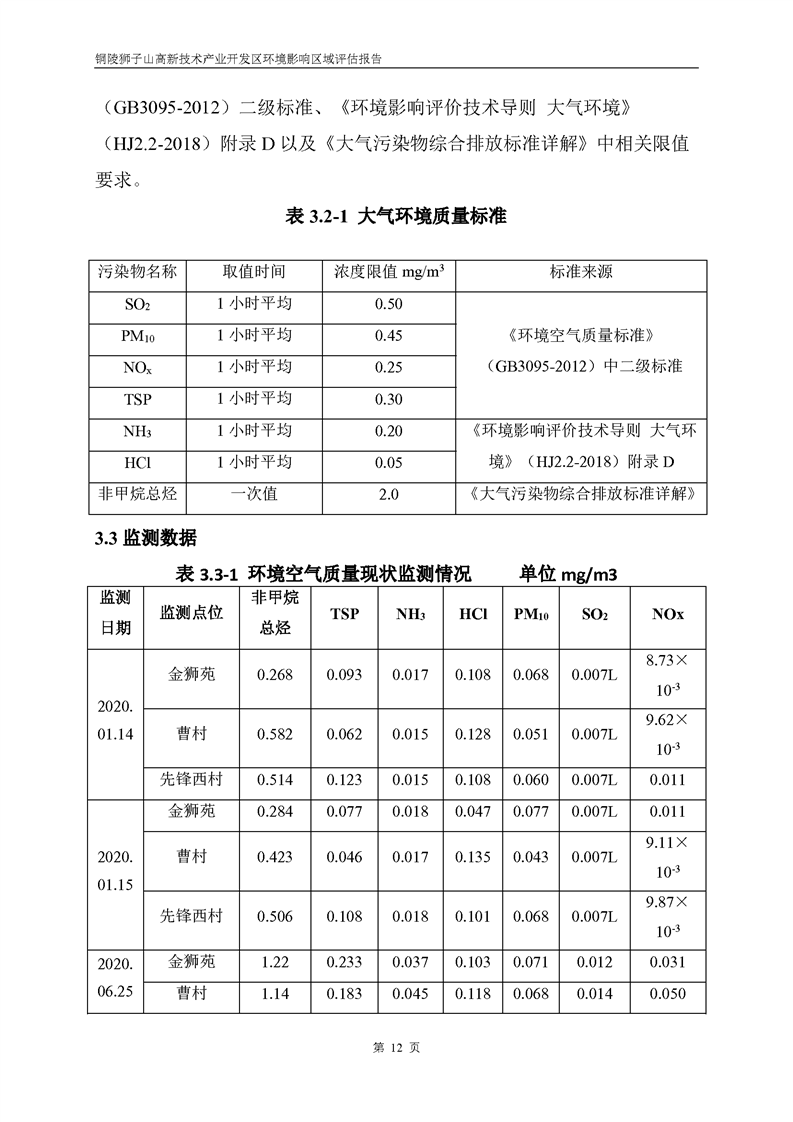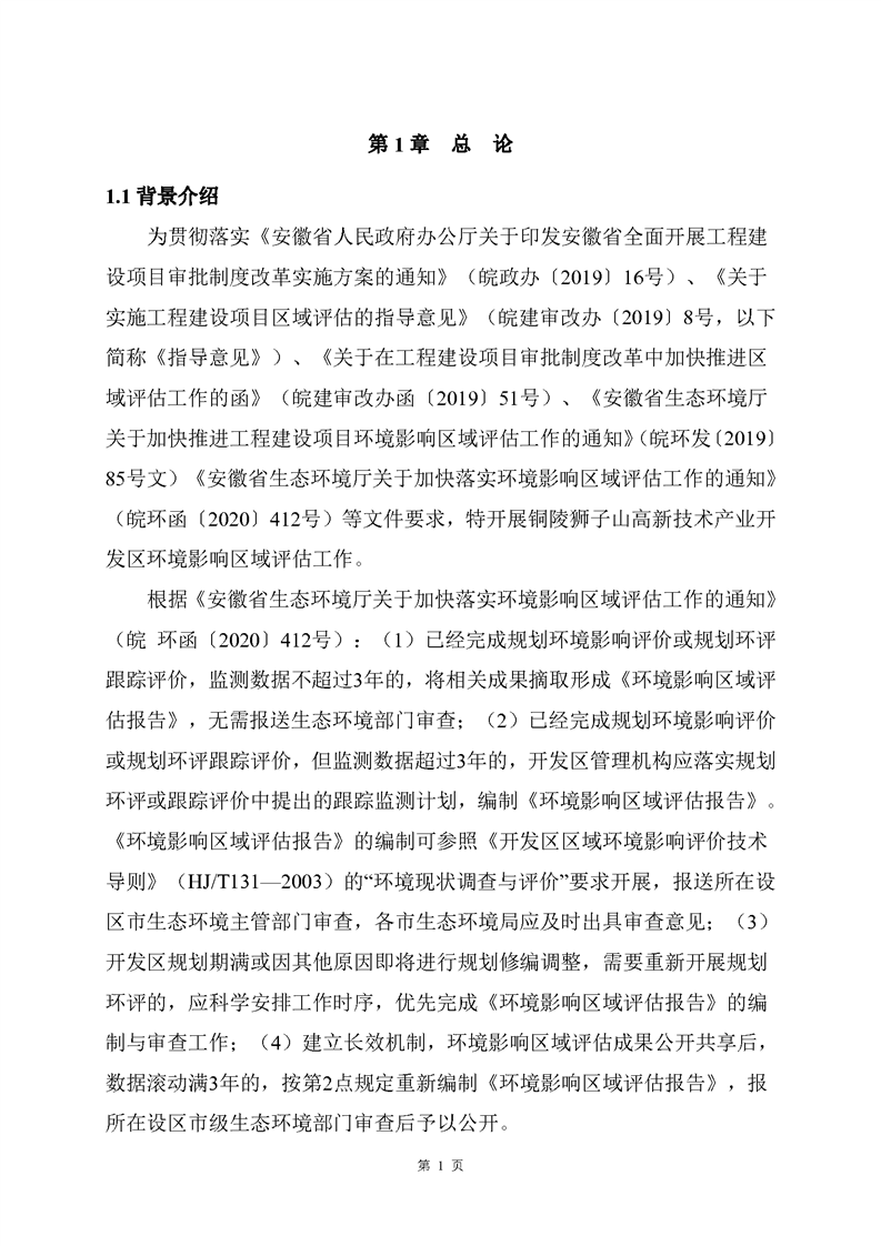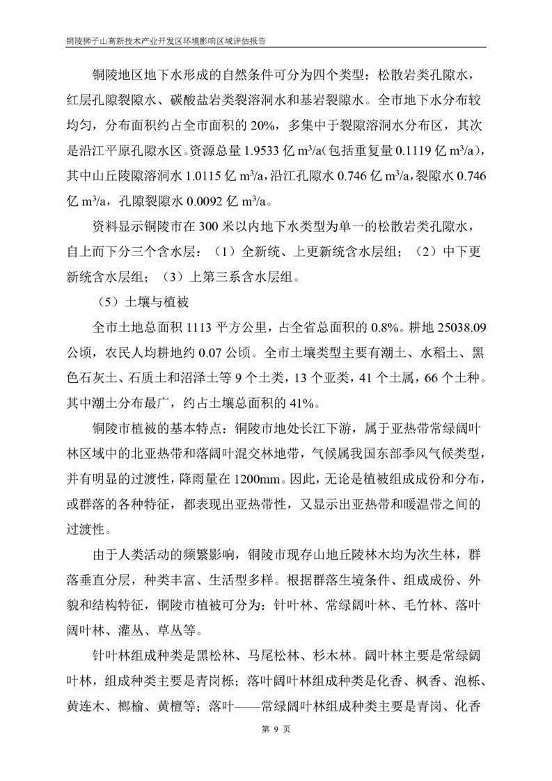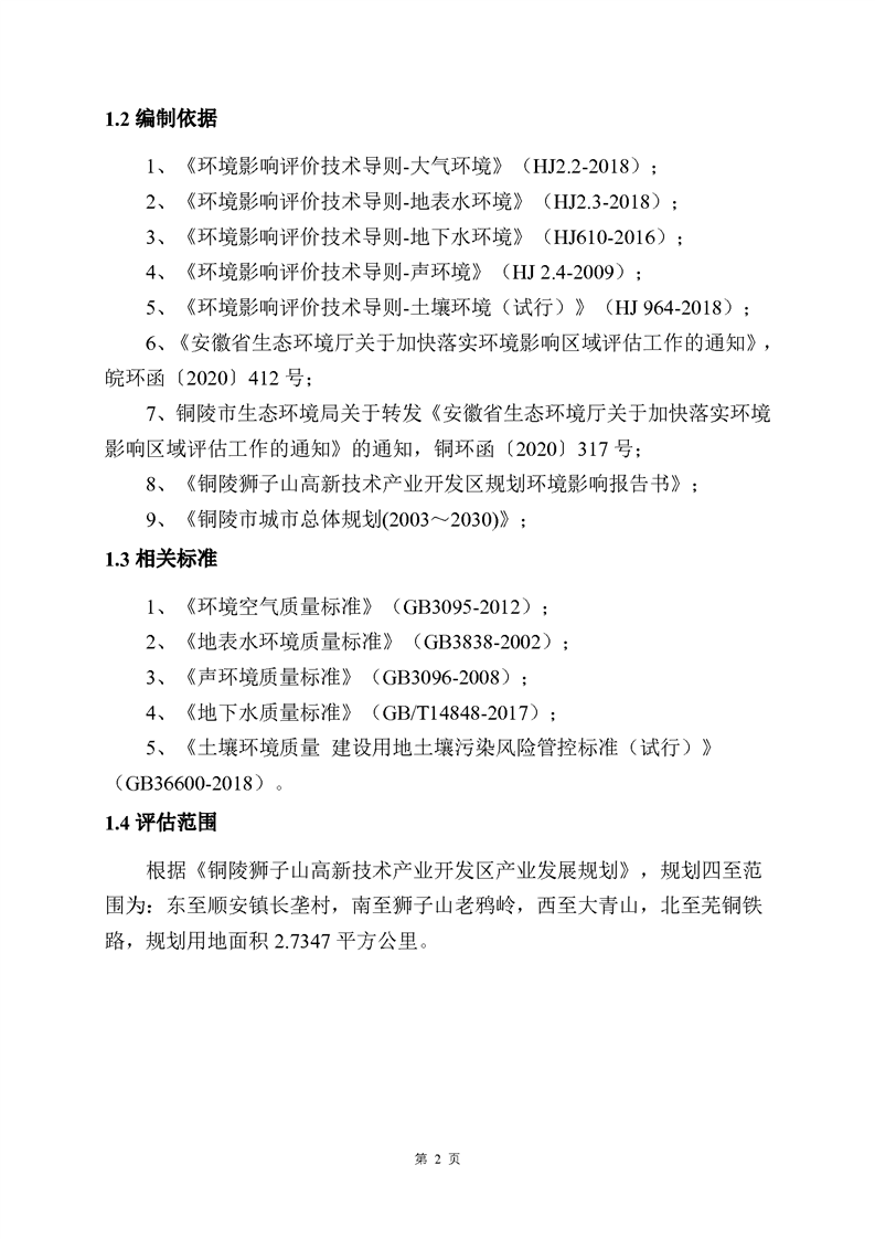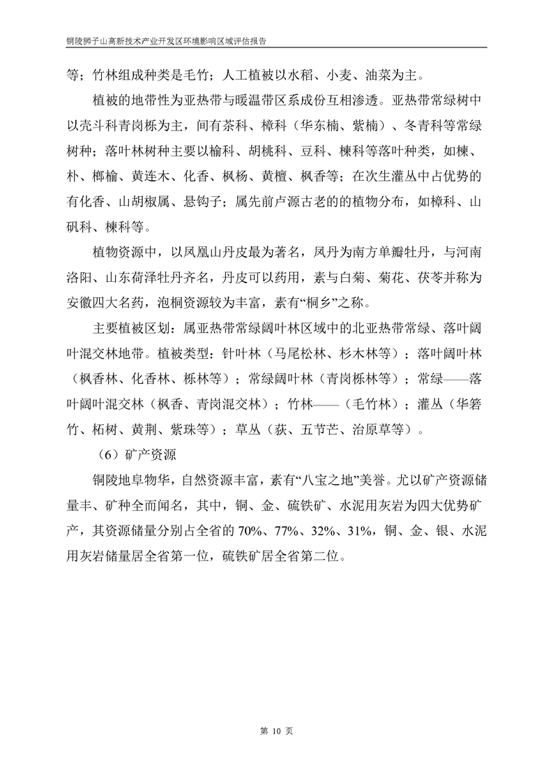 铜陵狮子山高新技术产业开发区 环境影响区域评估报告-铜官区人民政府