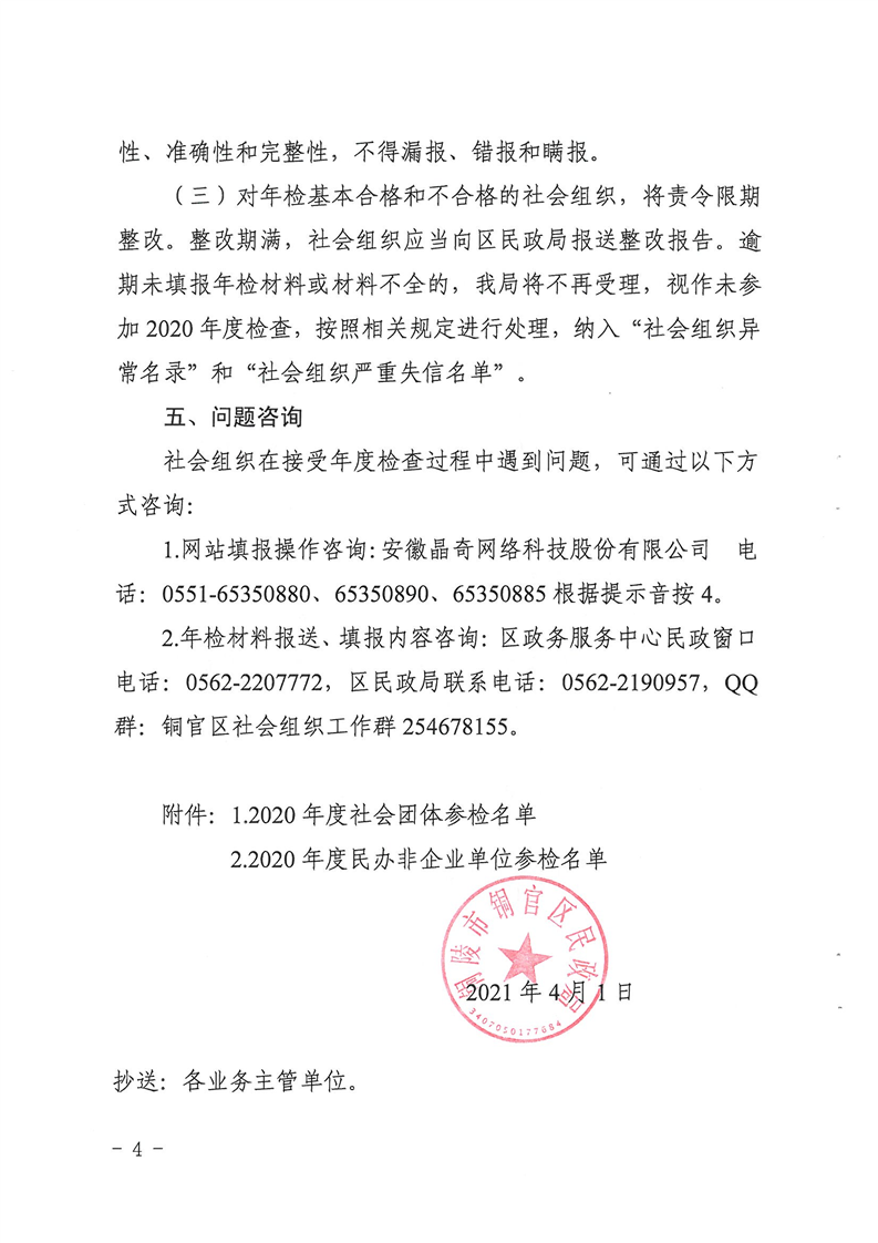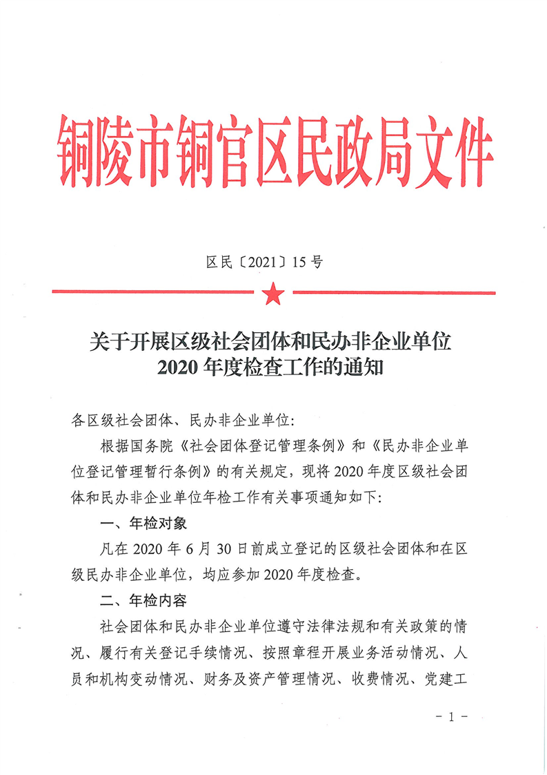 关于开展区级社会团体和民办非企业单位2020年度检查工作的通知-铜官区人民政府