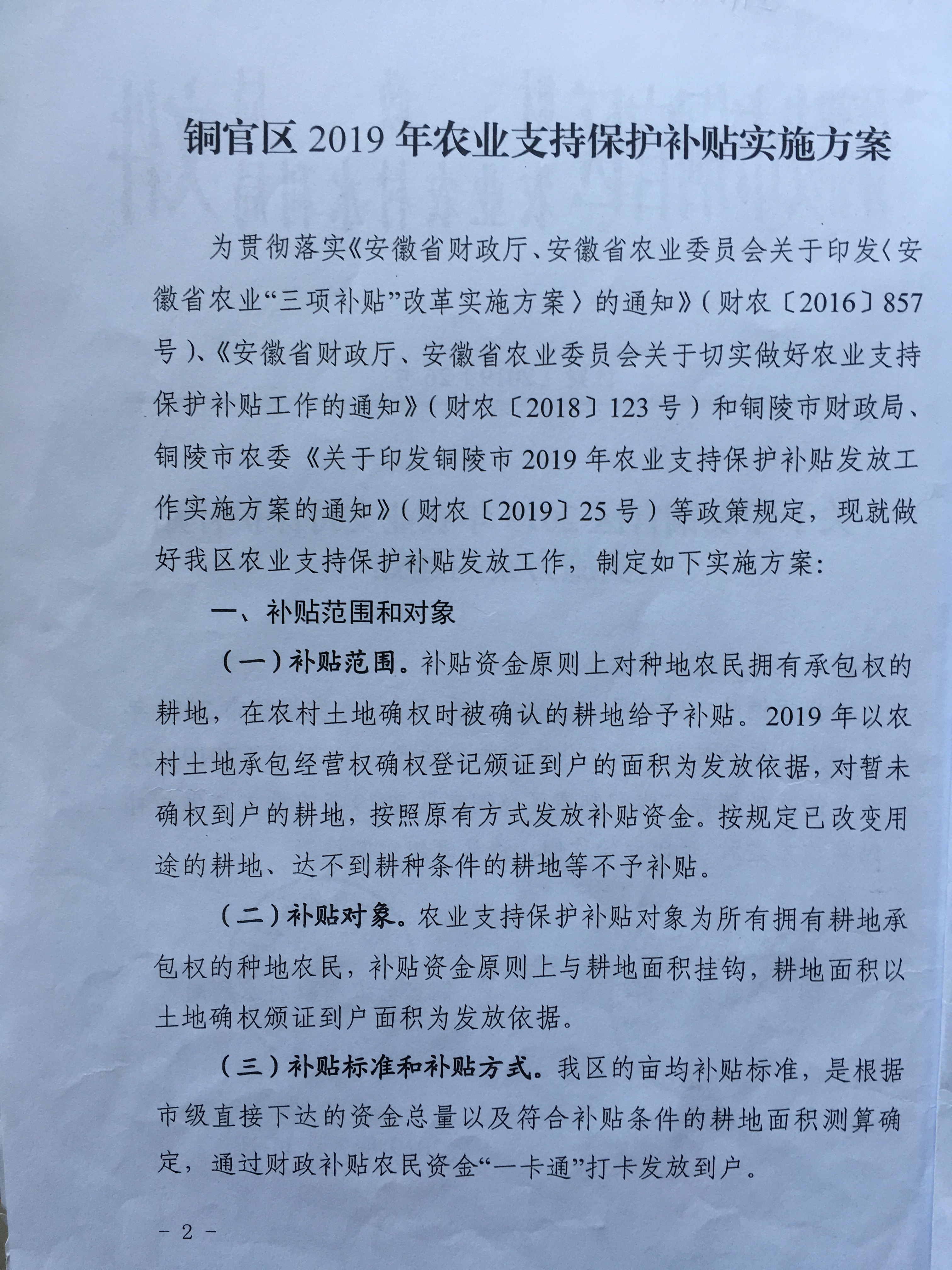 铜官区2019年农业支持保护补贴实施方案 |