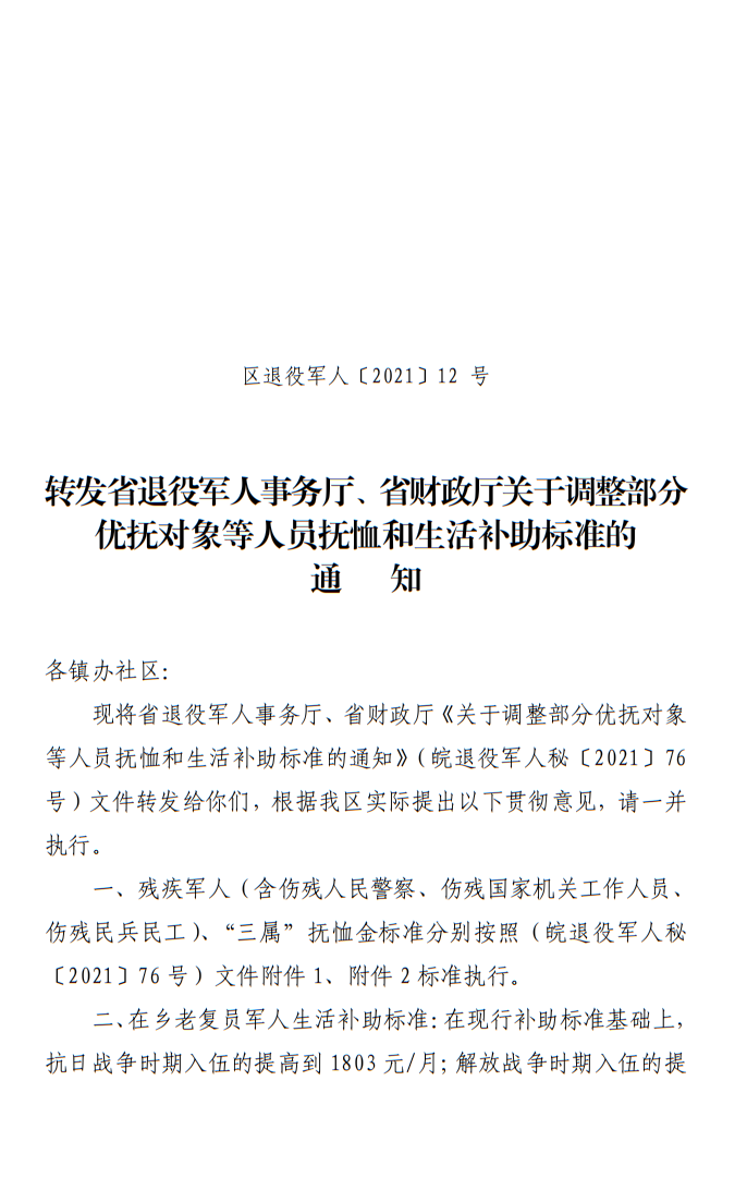 抚恤补助资金政策与标准-铜官区人民政府
