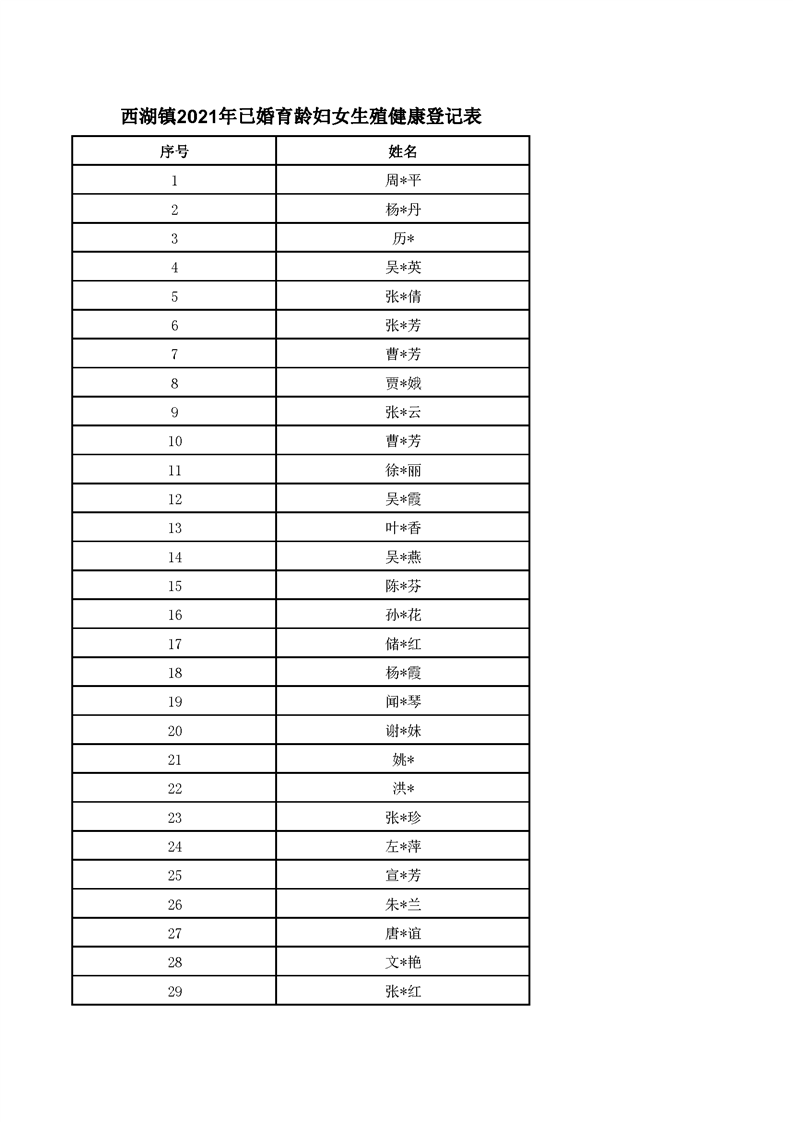 西湖镇2021年已婚育龄妇女生殖健康登记表-铜官区人民政府