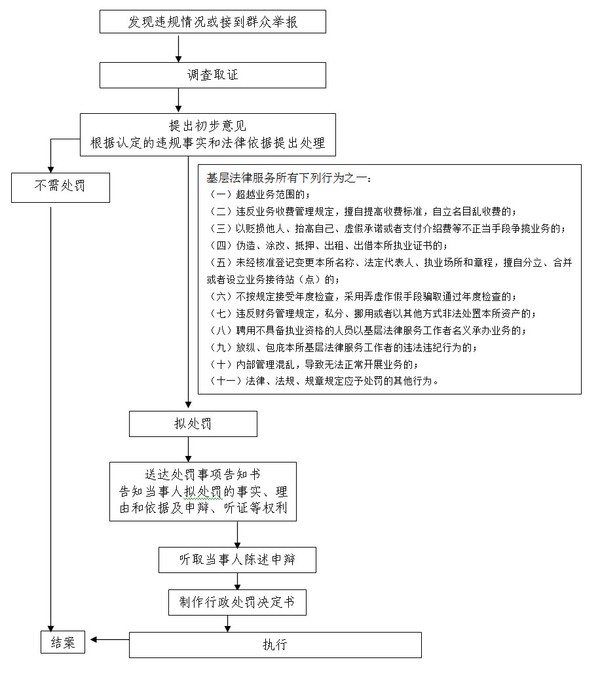 对基层法律服务所、基层法律服务工作者违法违规行为的处罚的流程图