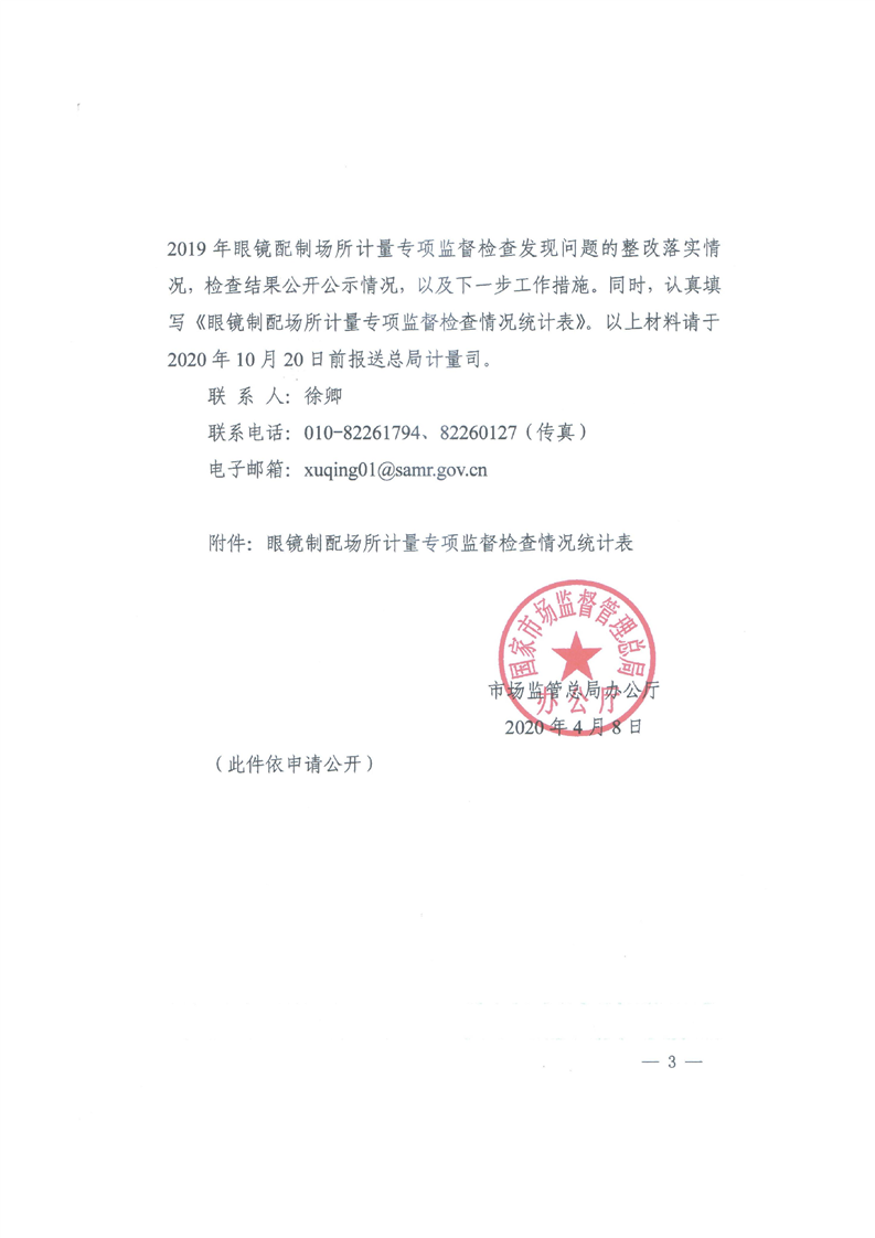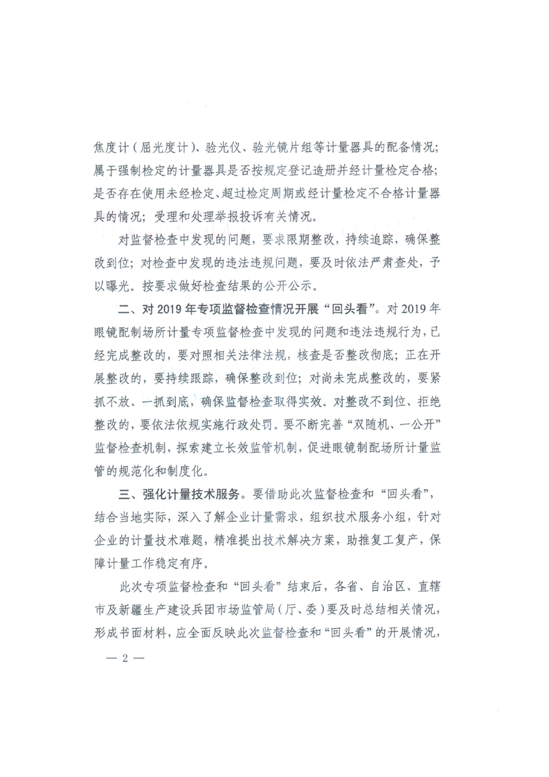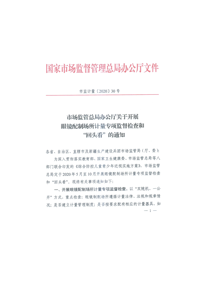 市场监管总局办公厅关于开展眼镜制配场所计量专项监督检查和“回头看”的通知-铜官区人民政府