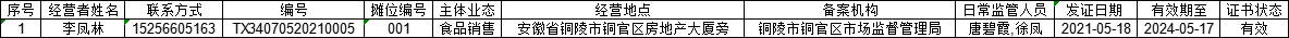 2021年食品摊贩备案基本信息-铜官区人民政府
