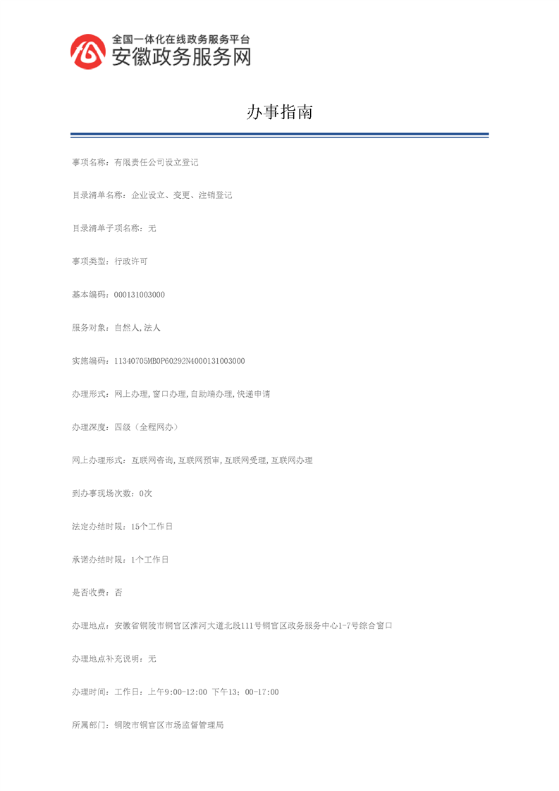 2021年铜官区市场监督管理局行政审批服务指南 |