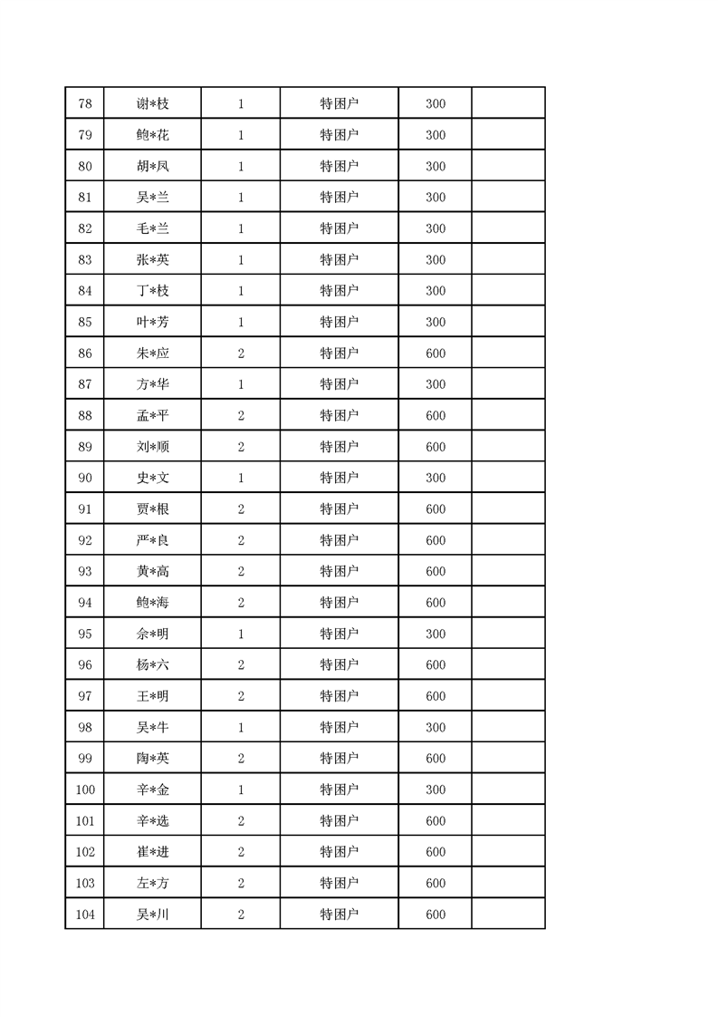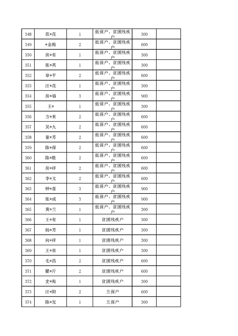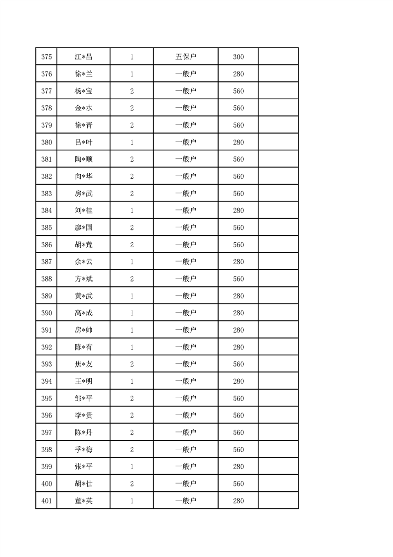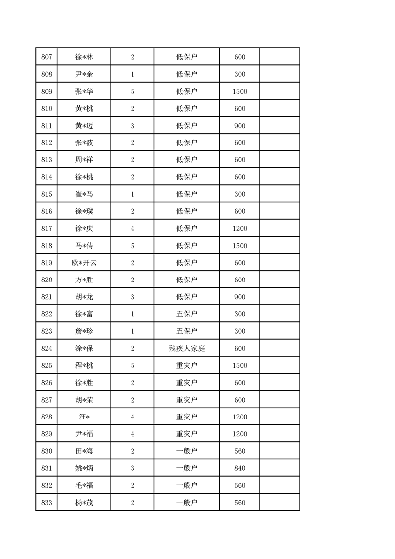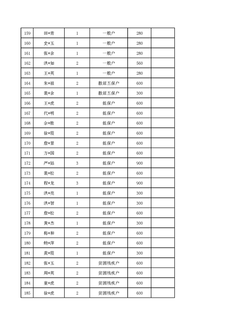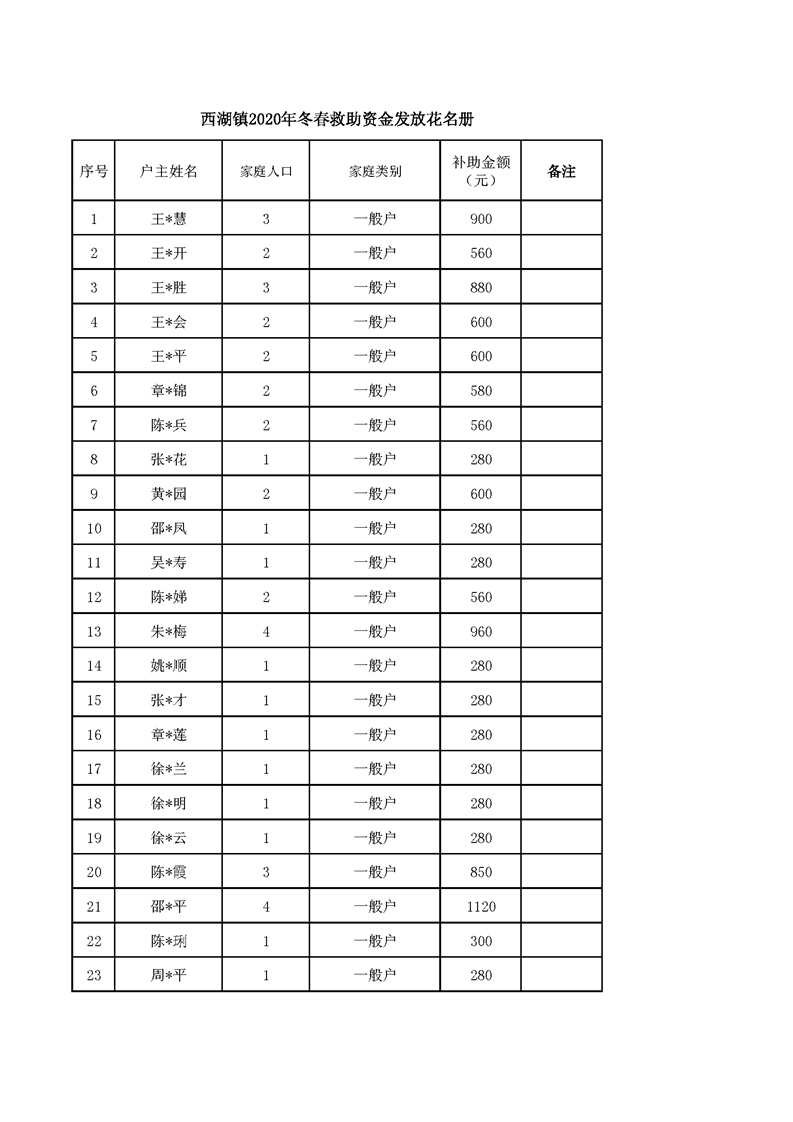 西湖镇2020年冬春救助资金发放表-铜官区人民政府