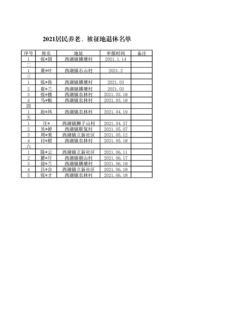 2021年西湖镇居民养老、被征地退休名单 |