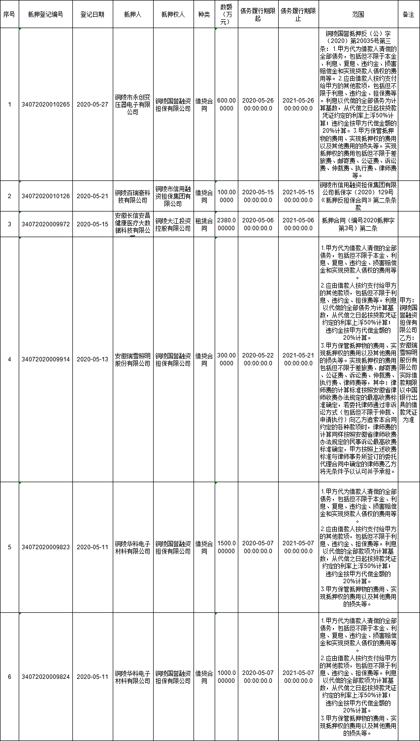 铜官区市场监督管理局2020年动产抵押设立登记结果公示(第五批)