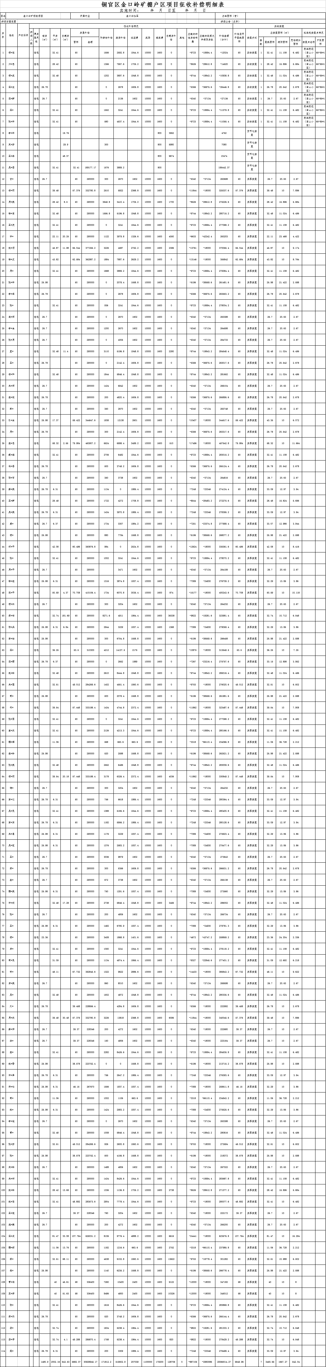 铜官区金口岭矿棚户区项目征收安置补偿明细表 |