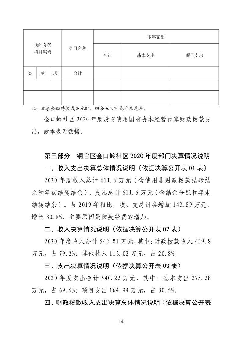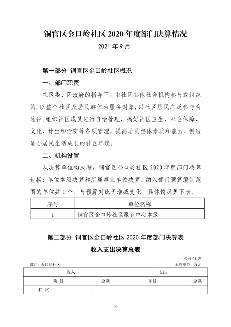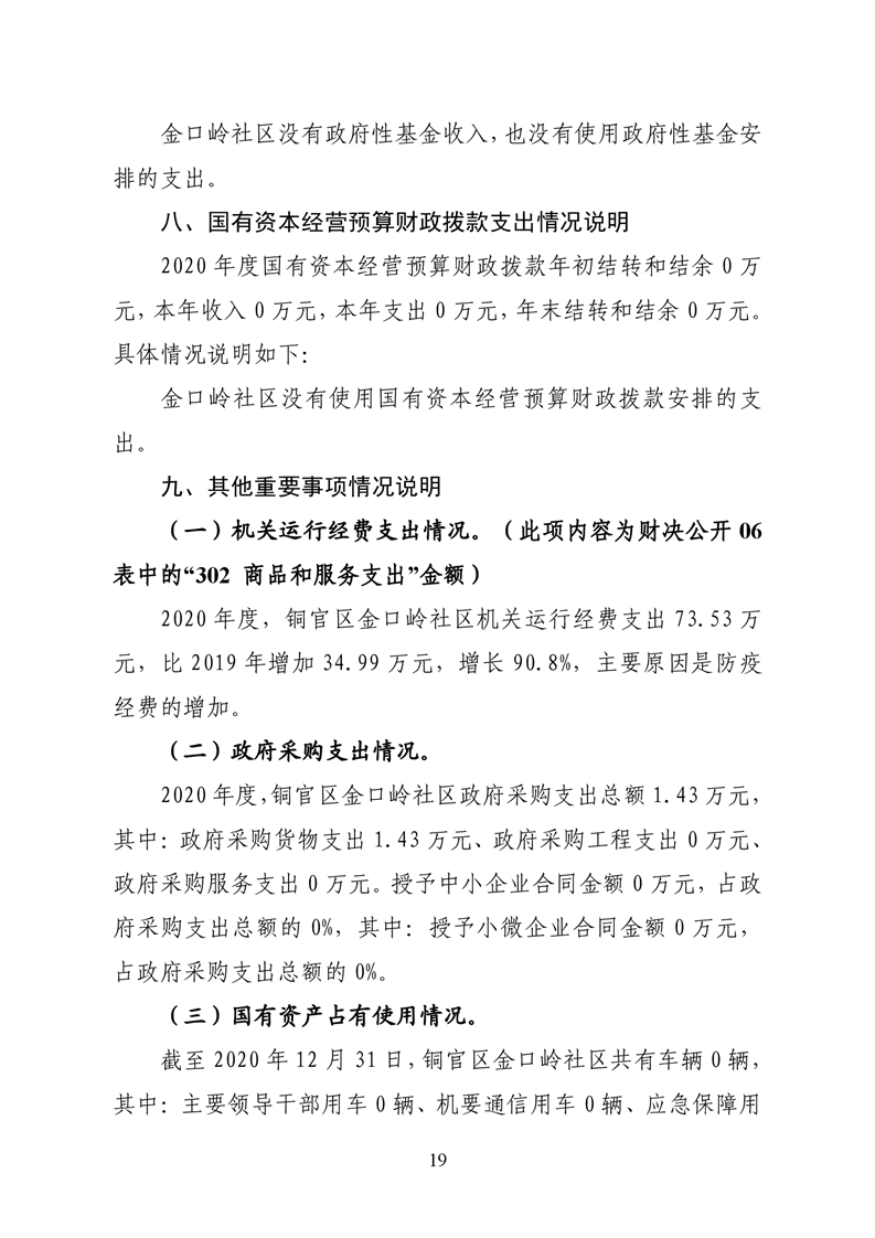 铜官区金口岭社区2020年度部门决算 |