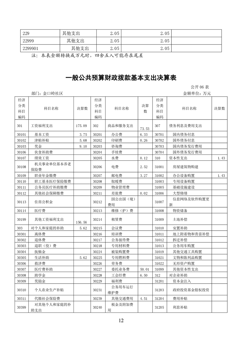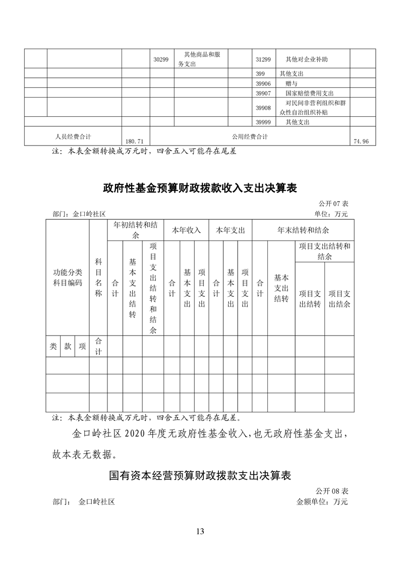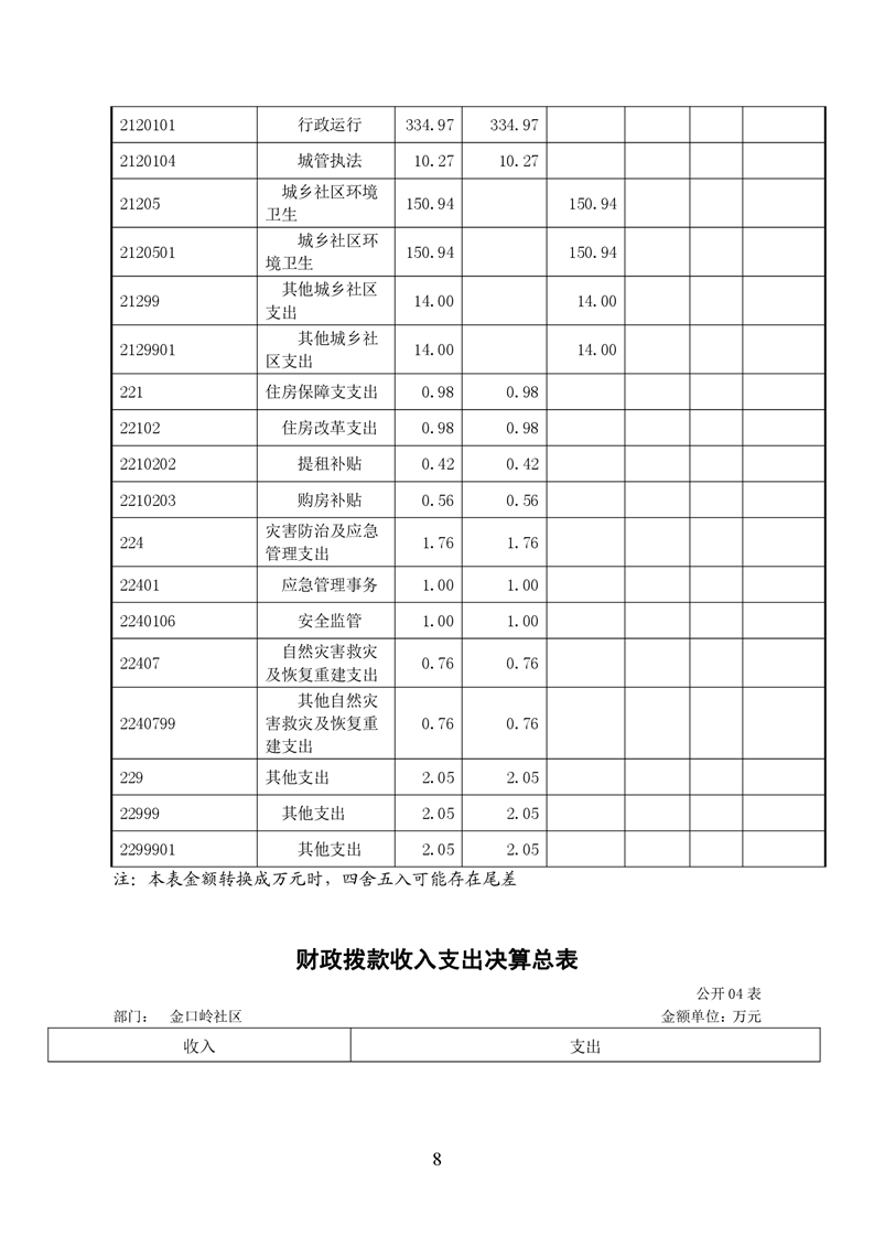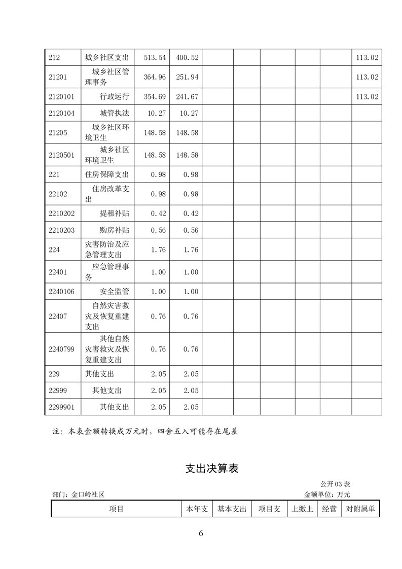 铜官区金口岭社区2020年度部门决算 |