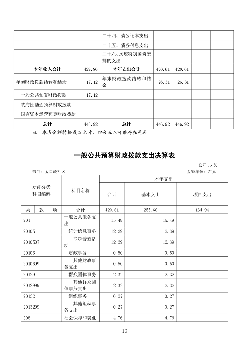 铜官区金口岭社区2020年度部门决算-铜官区人民政府