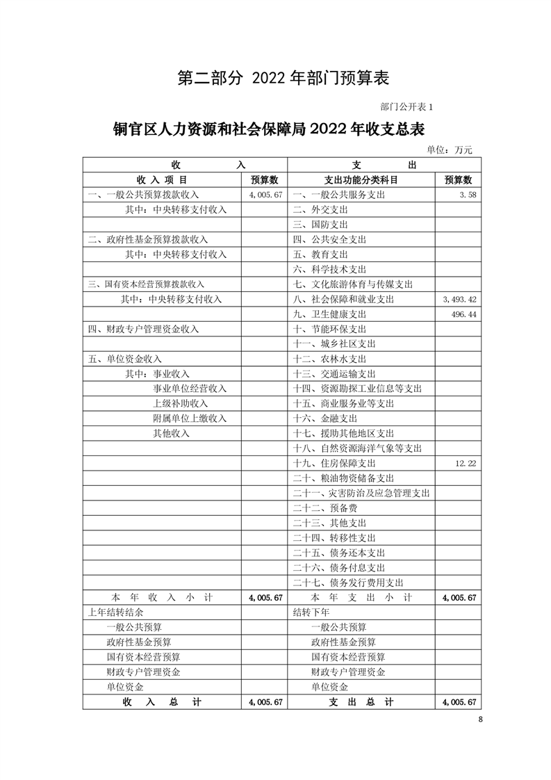 铜官区人力资源和社会保障局2022年部门预算公开 |