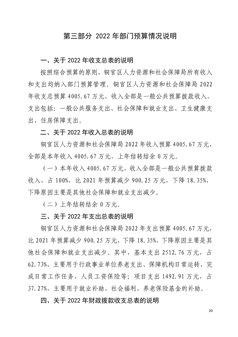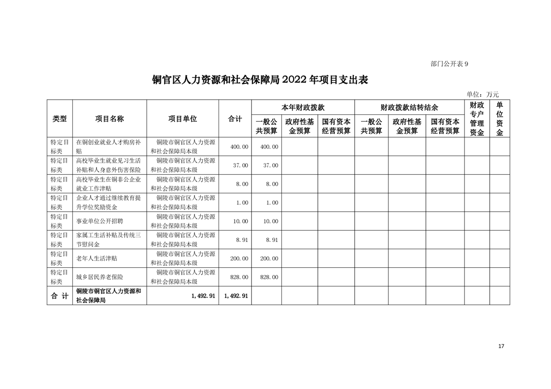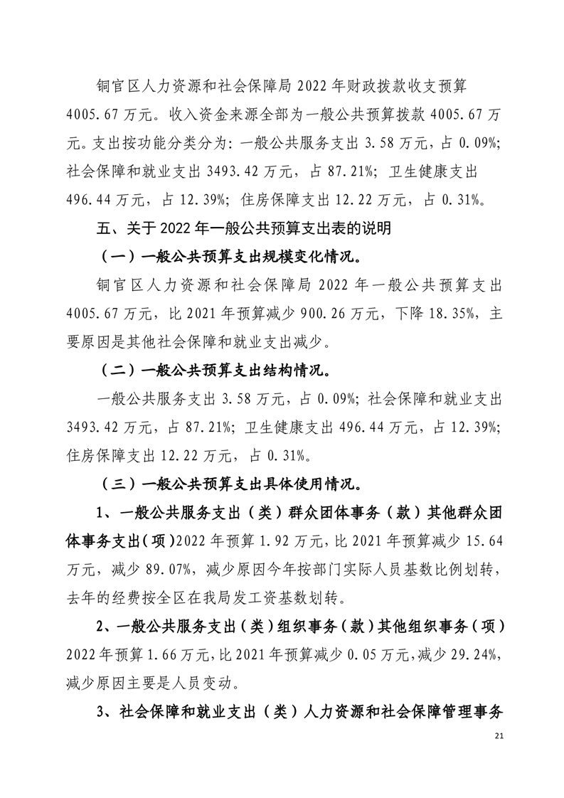 铜官区人力资源和社会保障局2022年部门预算公开-铜官区人民政府