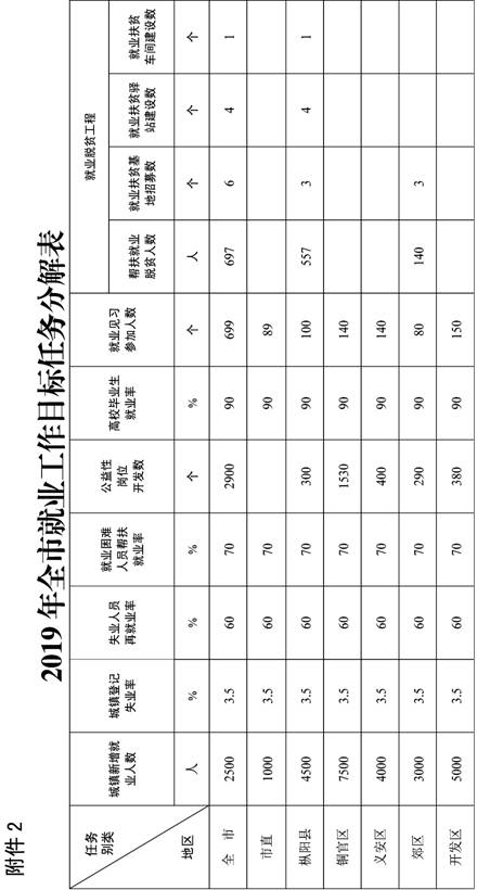 主要目标是:确保完成城镇新增就业2.5万人以上年度目标;城镇登记失业率控制在3.5%以内;组织699名高校毕业生和失业青年参加就业见习,应届高校毕业生年末就业率保持在90%以上;失业人员再就业率达60%;帮扶697名贫困人口实现就业,开发2900个公益性岗位,就业困难人员帮扶就业率达70%,确保零就业家庭动态清零。