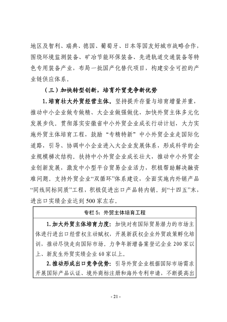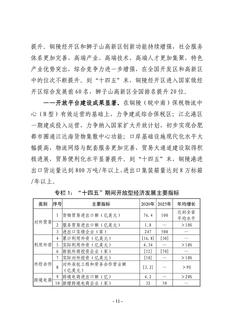 铜陵市“十四五”开放型经济发展规划 |