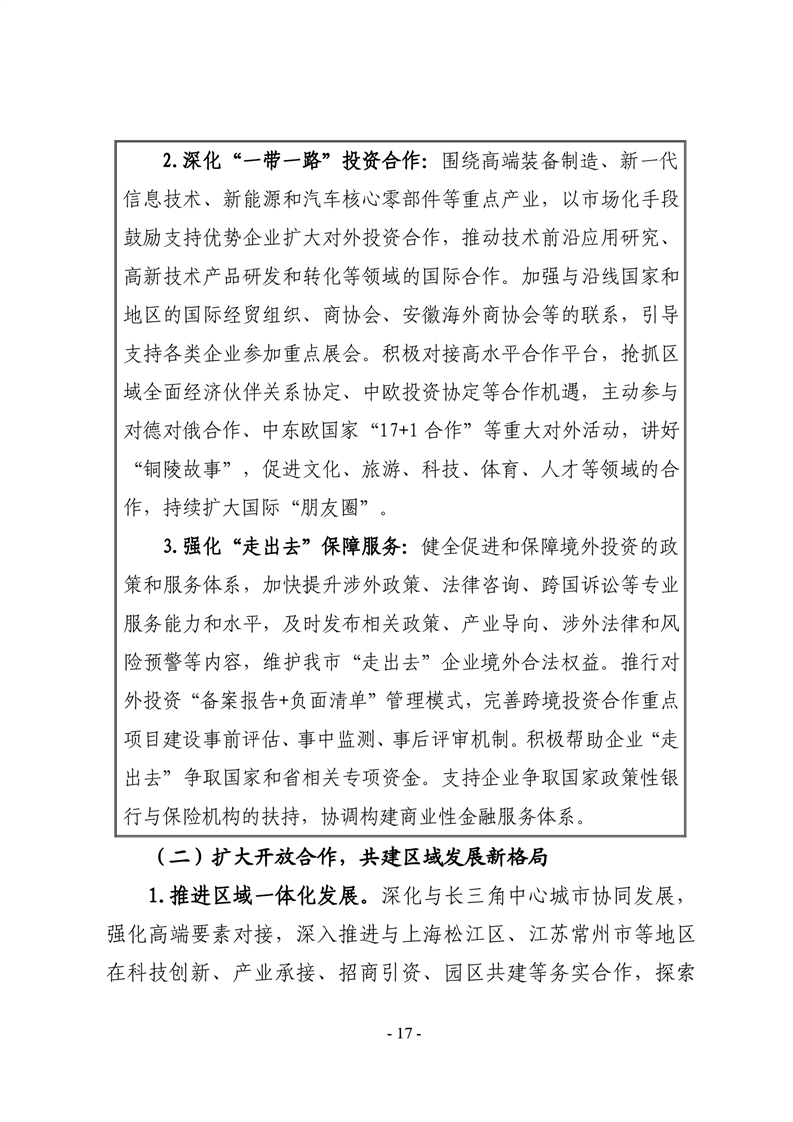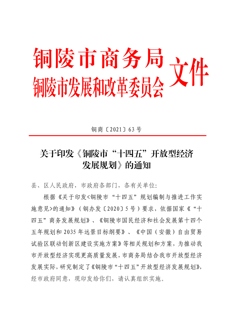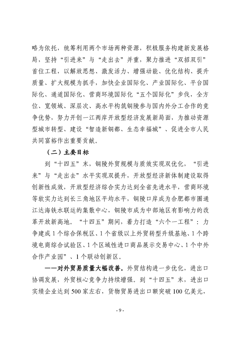 铜陵市“十四五”开放型经济发展规划-铜官区人民政府
