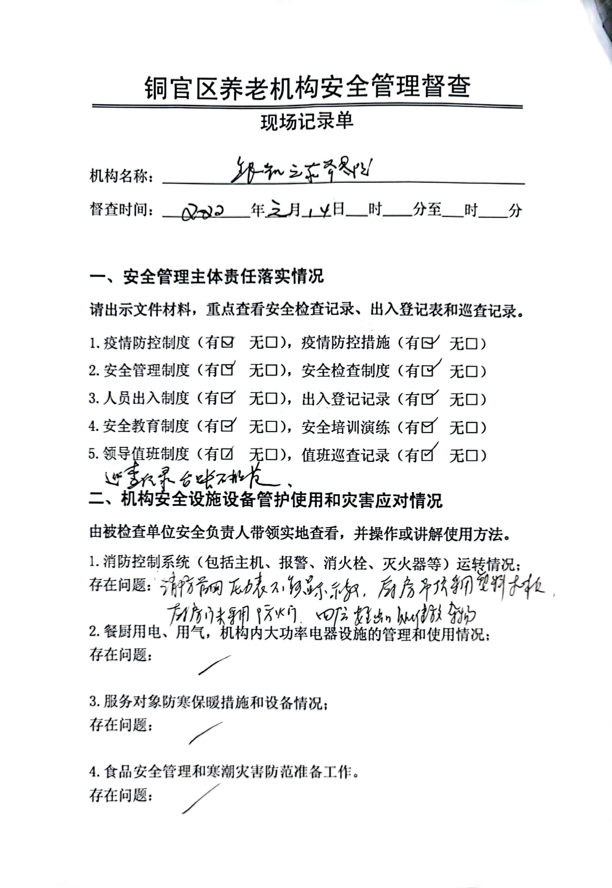 养老机构服务质量检查记录