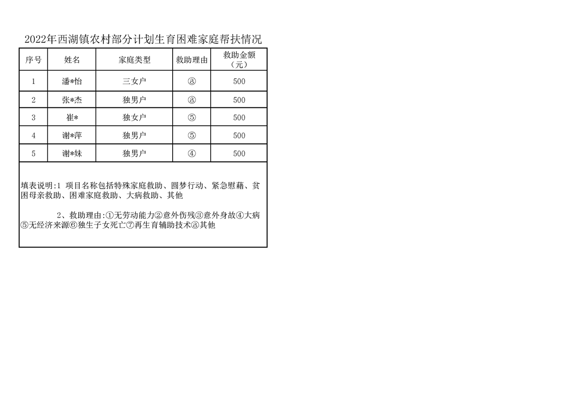 2022年西湖镇农村部分计划生育困难家庭帮扶情况 |