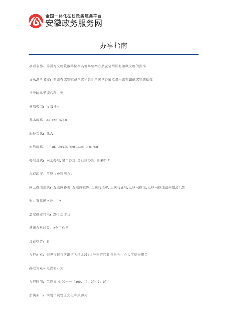 非国有文物收藏单位和其他单位举办展览需借用国有馆藏二级以下文物审批办事指南-铜官区人民政府