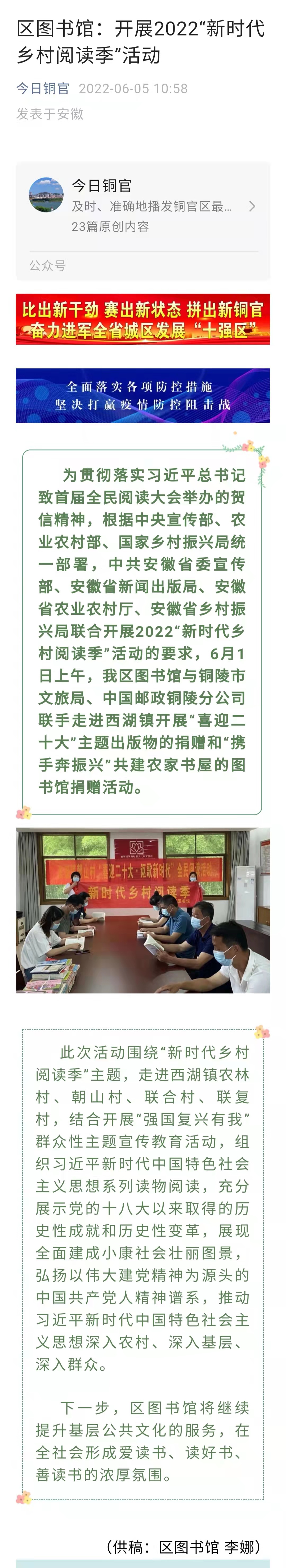 区图书馆:开展2022“新时代乡村阅读季”活动-铜官区人民政府