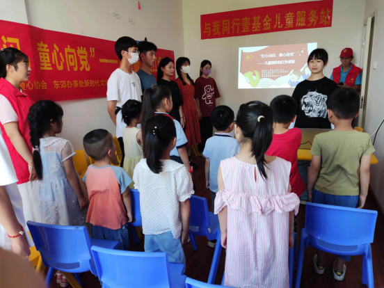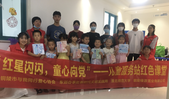 在七一这天,东郊办新时代文明实践所联合与我同行爱心协会在儿童志愿服务站开展了“红星闪闪,童心向党”主题班会活动,此次参加活动的主要是本辖区7-12岁的十几名儿童,还有淮北师范大学和东郊办志愿服务队的志愿者。在主持人的带领下,大家起立一起唱了国歌和《我们是共产主义接班人》,接着由志愿者们介绍了国旗的知识,讲述了狼牙山五壮士,刘胡兰,邱少云等革命烈士的故事,并教学唱了红歌《没有共产党就没有新中国》,还开展了关于党和国家伟人的有奖知识问答,讲述了英雄雨来和铁人王进喜的故事,让孩子们上来分享自己心中的英雄,最后观看了电影《闪闪的红星》,还给每个参与的小朋友发放了文具礼包。据悉,该志愿服务站是由绿源置业有限公司免费提供的儿童志愿服务场所,此次班会活动为暑期班开班第一课。后期东郊办新时代文明实践所将会继续开展惠及本辖区未成年人的主题活动。
