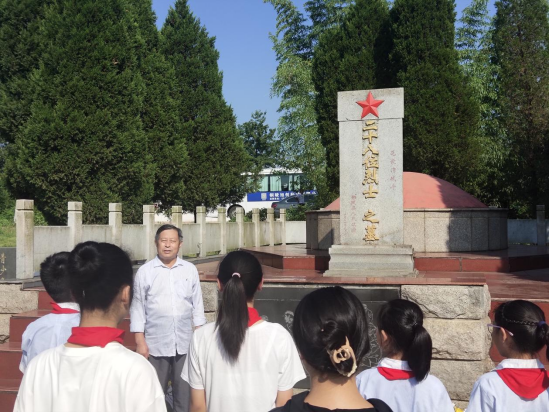 当天清晨,21名少先队员怀着崇敬的心情来到范家湾烈士墓,接受历史的洗礼,感受革命精神力量。进入陵园,同学们有序地站在烈士墓前,学生代表上前向烈士们敬献鲜花,全体学生行少先队员礼。五老志愿者李长玉给大家讲述着先烈的故事,同学们一扫往日的喧闹嬉戏,静静地肃立着,细心聆听,深刻体会。不仅缅怀了先烈,祭奠了英灵,更是一堂具体、生动、有温度的党史学习教育课,引导广大少先队员永远铭记英雄烈士的牺牲和奉献。