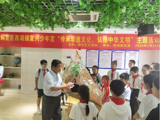 7月正式进入孩子们满心欢喜的暑假,为丰富孩子们的暑期生活,让孩子们度过一个愉快而又充满乐趣的假期。7月22日上午,铜官区西湖镇复兴少年宫积极组织开展以“传承非遗文化,弘扬中华文明”主题的暑期活动。
